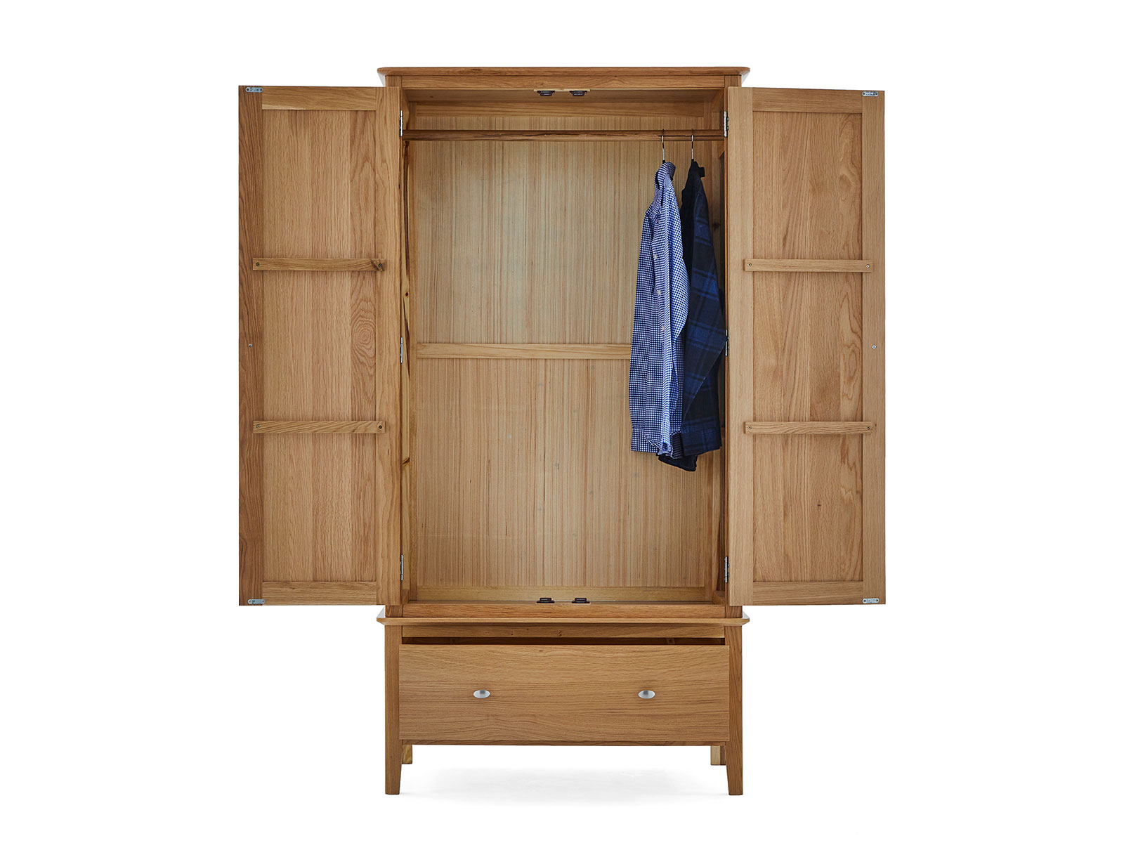 This range is a relaxed modern oak bedroom collection, exuding elegance defined by clean lines & gentle curves. The collection has been finished in a natural lacquer, which gives the tops durability. Bath has an offering of 3 different bed sizes, 2 sizes of bedsides, 2 sizes of chests and 2 sizes of wardrobes providing plenty of stylish and flexible bedroom storage.