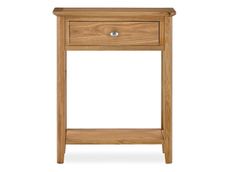 This collection is subtle but sophisticated; clean lines, solid oak tapered legs and posts. It is crafted from Oak & Oak veneers with a brush oval handle giving the product contrast and