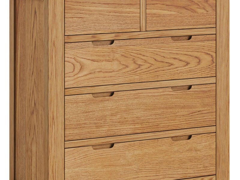 Bergen is beautifully made from solid Oak and Oak veneers. The collection showcases many unique features including inset handles, soft rounded corners and exaggerated exposed wood grain.