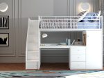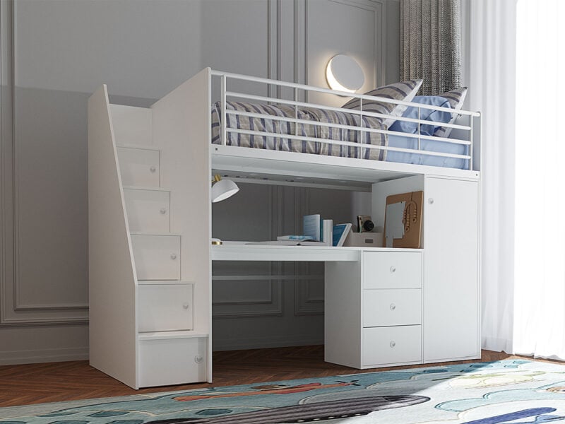 The Dakota White High Sleeper with Workstation is a space-saving marvel that combines sleep, study, and storage in one sleek design. Its sturdy grey frame and integrated desk make it perfect for maximising small spaces while maintaining a modern aesthetic.