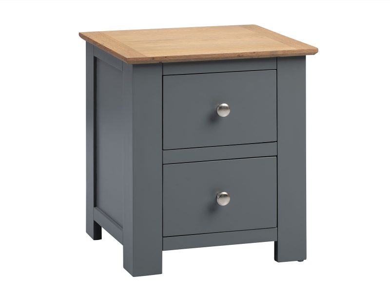 Flintshire Furniture Solid Oak Bedside Cabinet in Heritage Grey finish- matching bedside cabinets are of a high-quality solid oak construction.