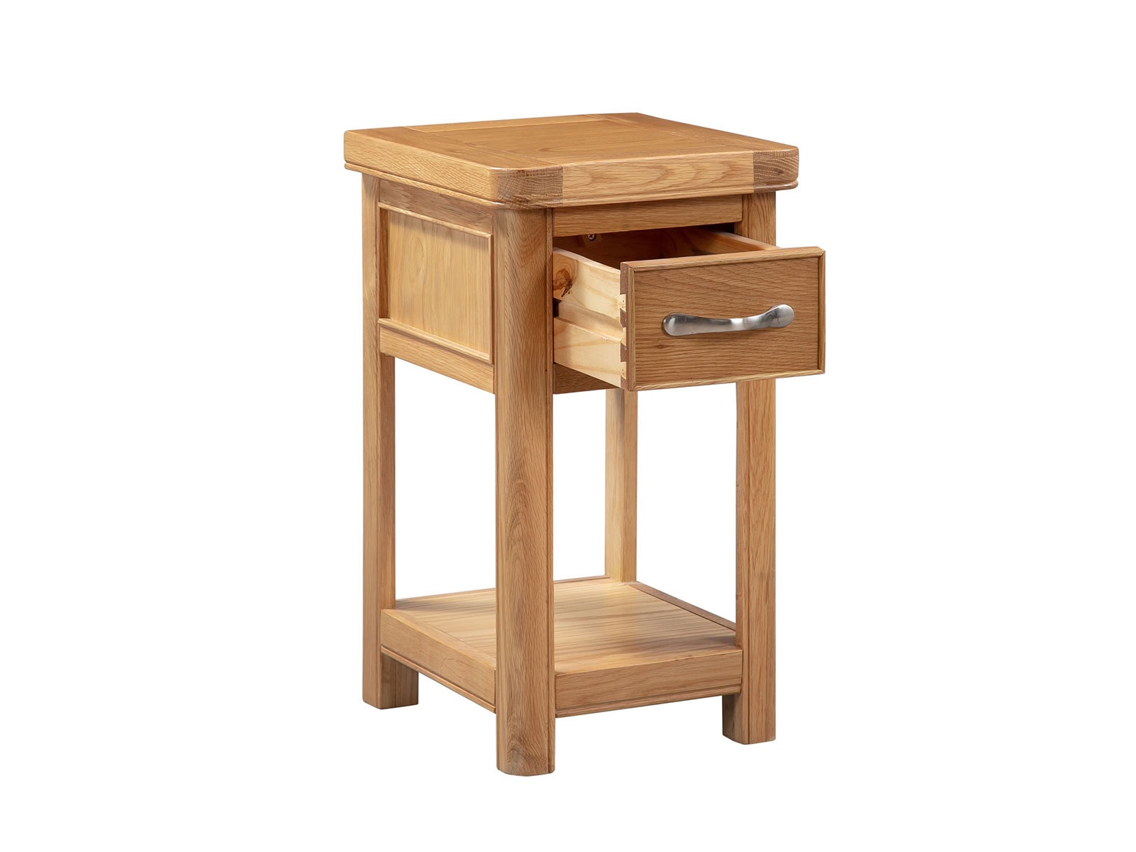 The Blenheim Oak Range of furniture is characterised by curved edges, classic moulding and a contemporary stainless steel handle. Blenheim Oak is finished in a natural colour with a clear lacquer.