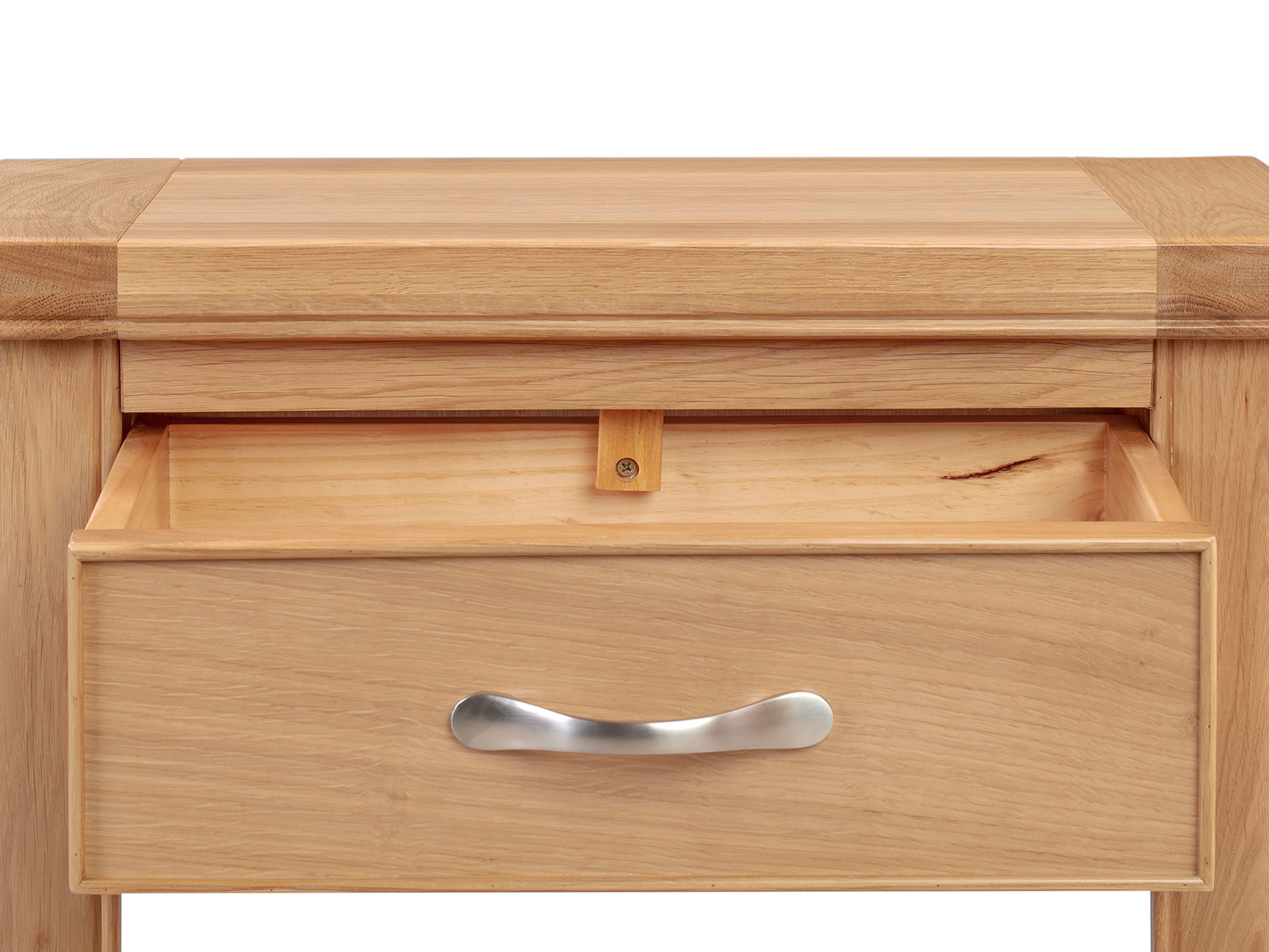 The Blenheim Oak Range of furniture is characterised by curved edges, classic moulding and a contemporary stainless steel handle. Blenheim Oak is finished in a natural colour with a clear lacquer.