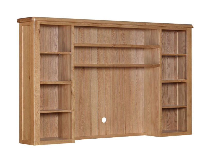 The Furniture Mill Evesham Oak Media Bookcase Is designed to be placed on the XL TV Unit.