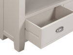is manufactured with bases & legs in a light grey and finished with oak tops in a warm colour. Smooth, rounded corners, panelling and a retro cup handle give the range a traditional appeal for the modern home.