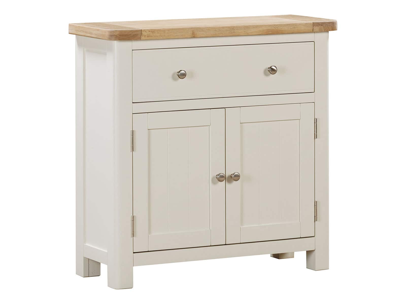 The Furniture Mill Hampton Painted range of furniture is characterised by its contemporary washed oak top, clean shaker style and off-white finish. Each piece comes with a choice of handle: round stainless steel knob or retro cup handle.