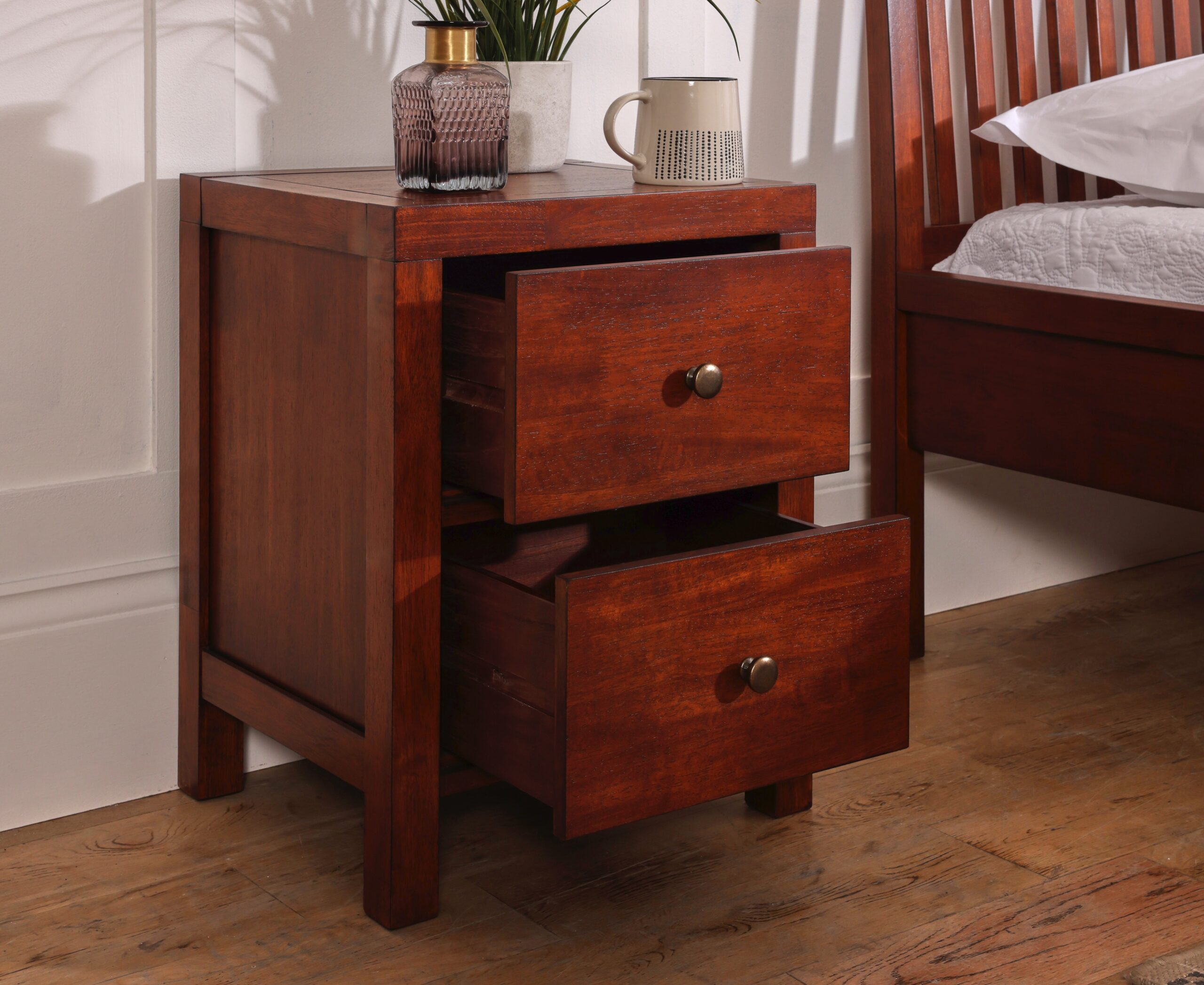 Java 2 Drawer Bedside Table in Cherry Oak