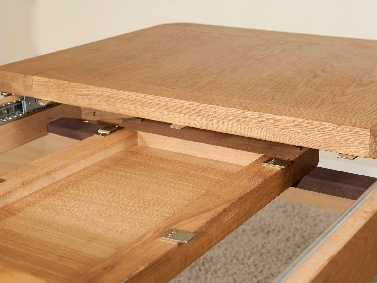 A range of rustic oak, which includes dining and occasional furniture. Each piece has a hand wax finish and is finished with antique brass hardware.