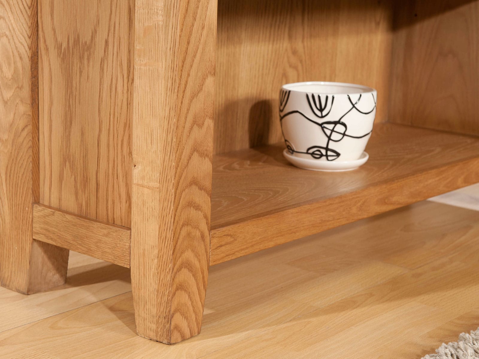 A range of rustic oak, which includes dining and occasional furniture. Each piece has a hand wax finish and is finished with antique brass hardware.