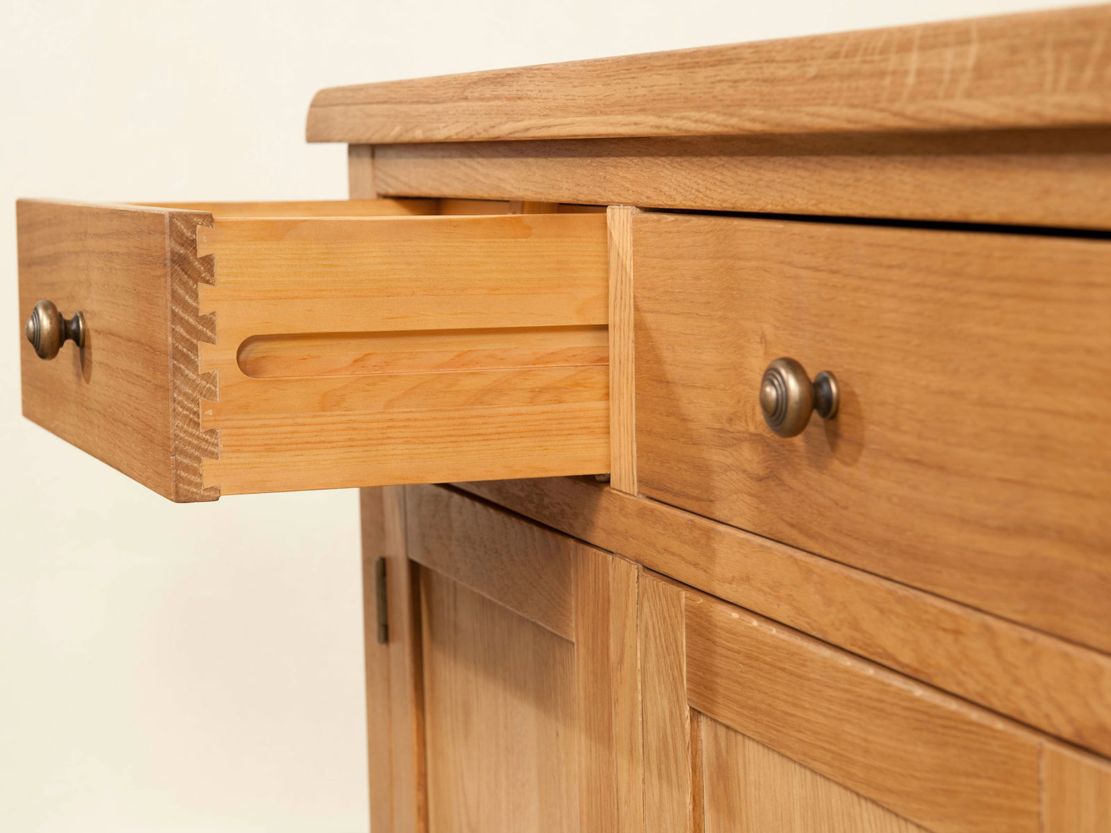 A range of rustic oak, which includes dining and occasional furniture. Each piece has a hand wax finish and is finished with antique brass hardware.