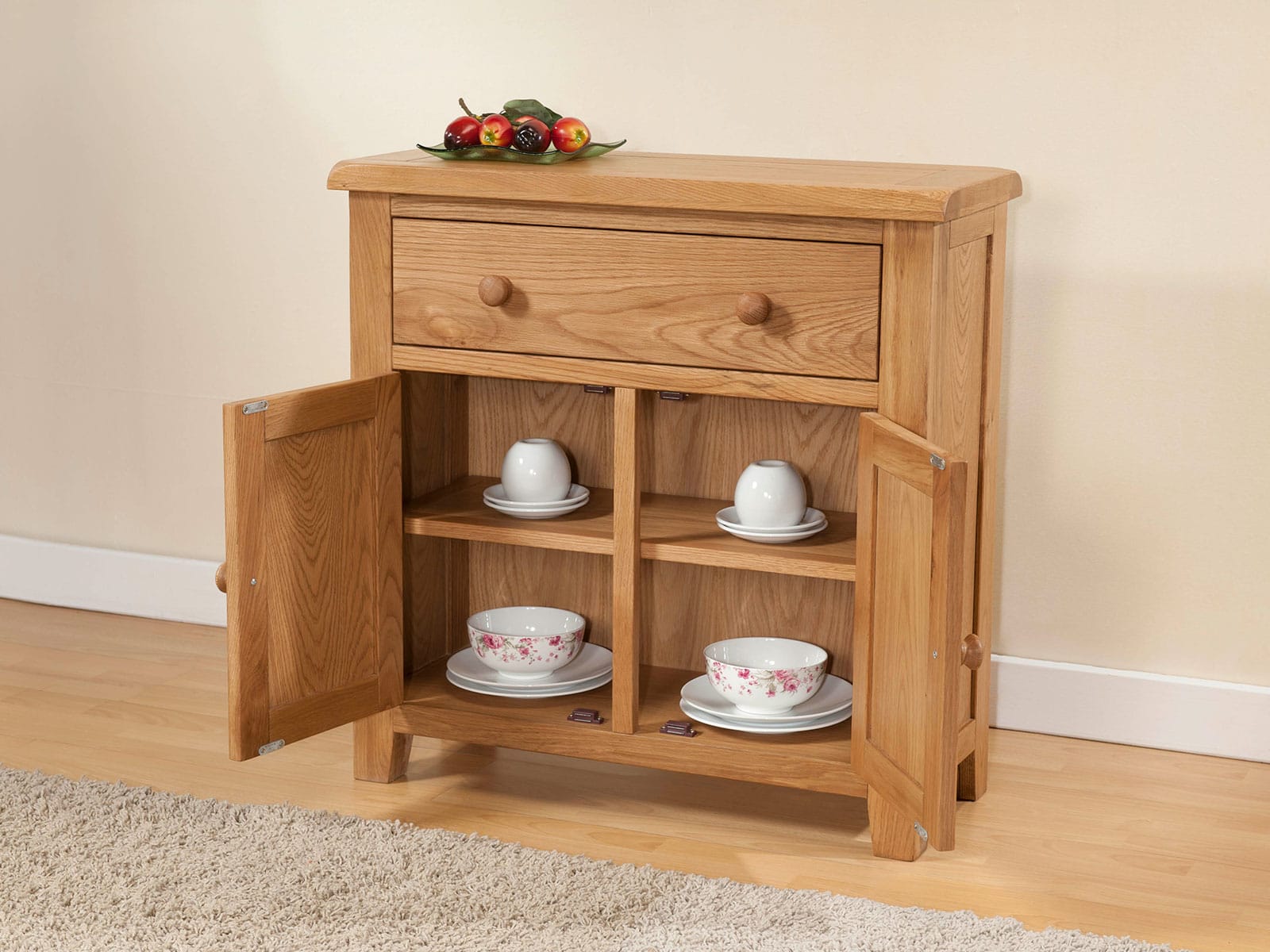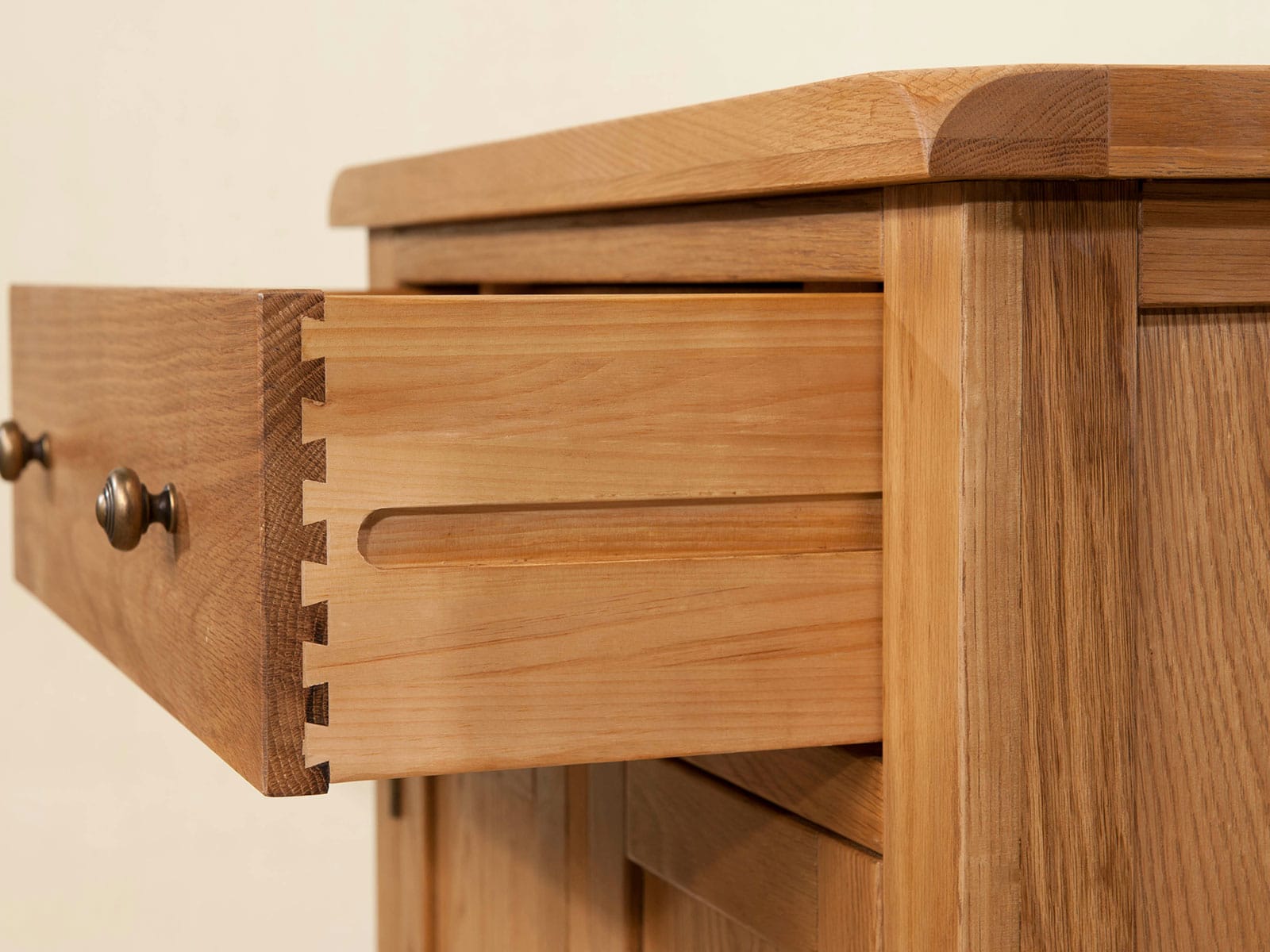 A range of rustic oak, which includes dining and occasional furniture. Each piece has a hand wax finish and is finished with antique brass hardware.
