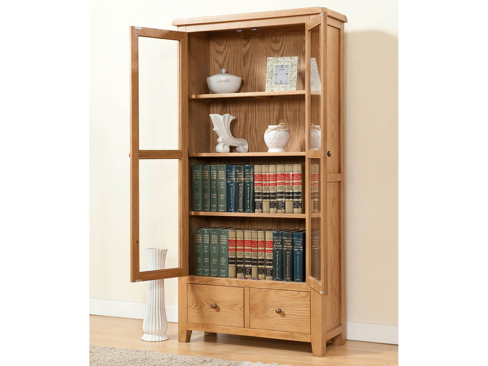 A range of rustic oak, which includes dining and occasional furniture. Each piece has a hand wax finish and is finished with antique brass hardware.