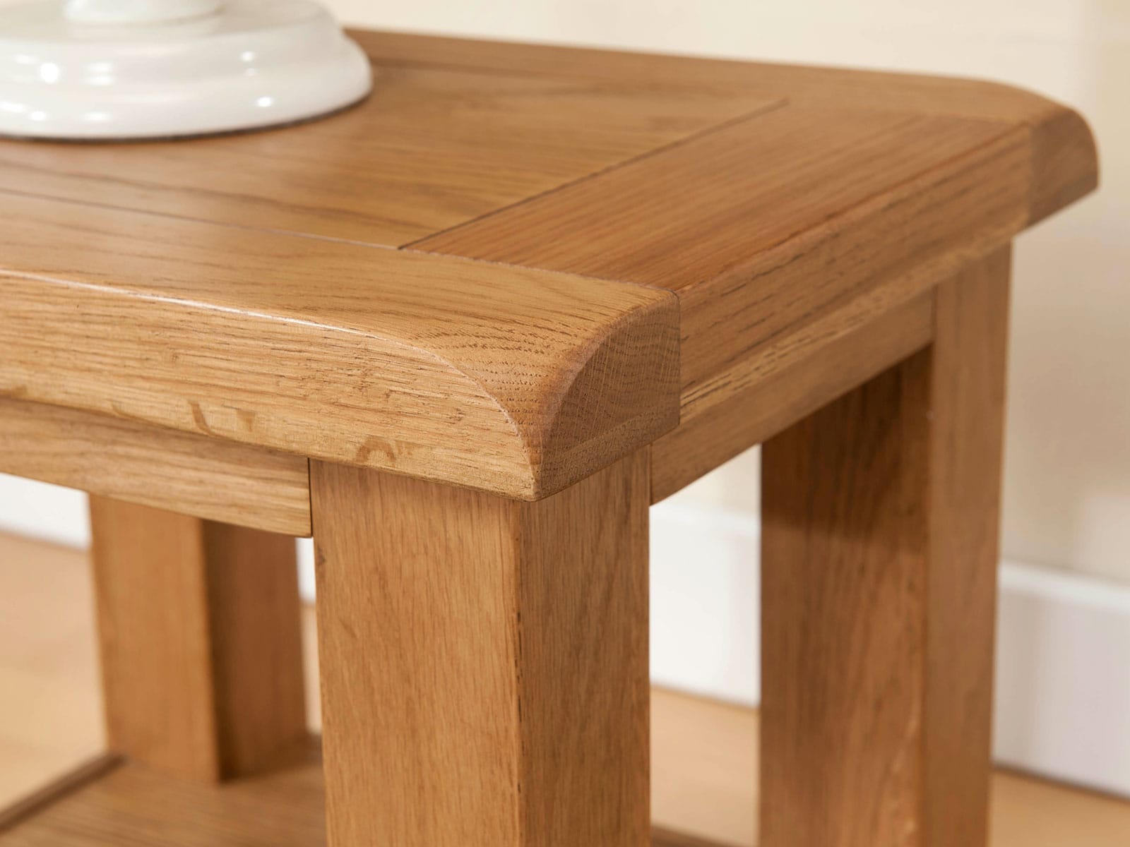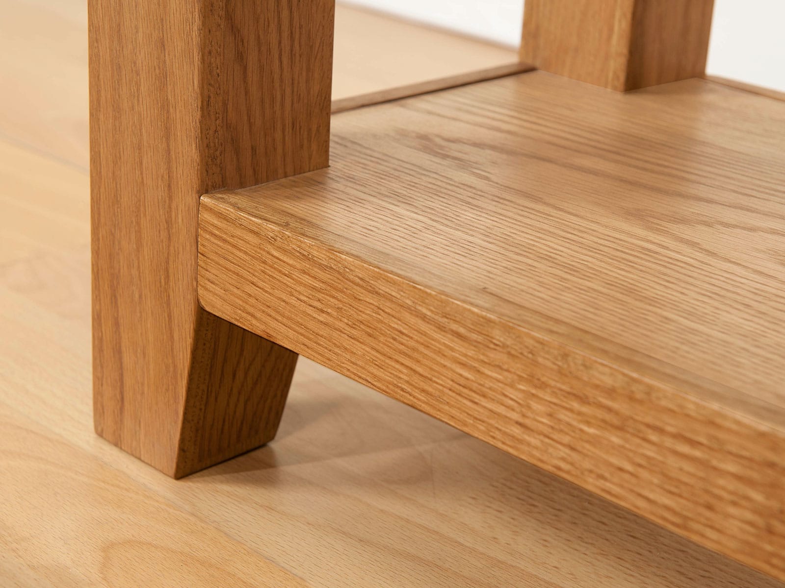 A range of rustic oak, which includes dining and occasional furniture. Each piece has a hand wax finish and is finished with antique brass hardware.