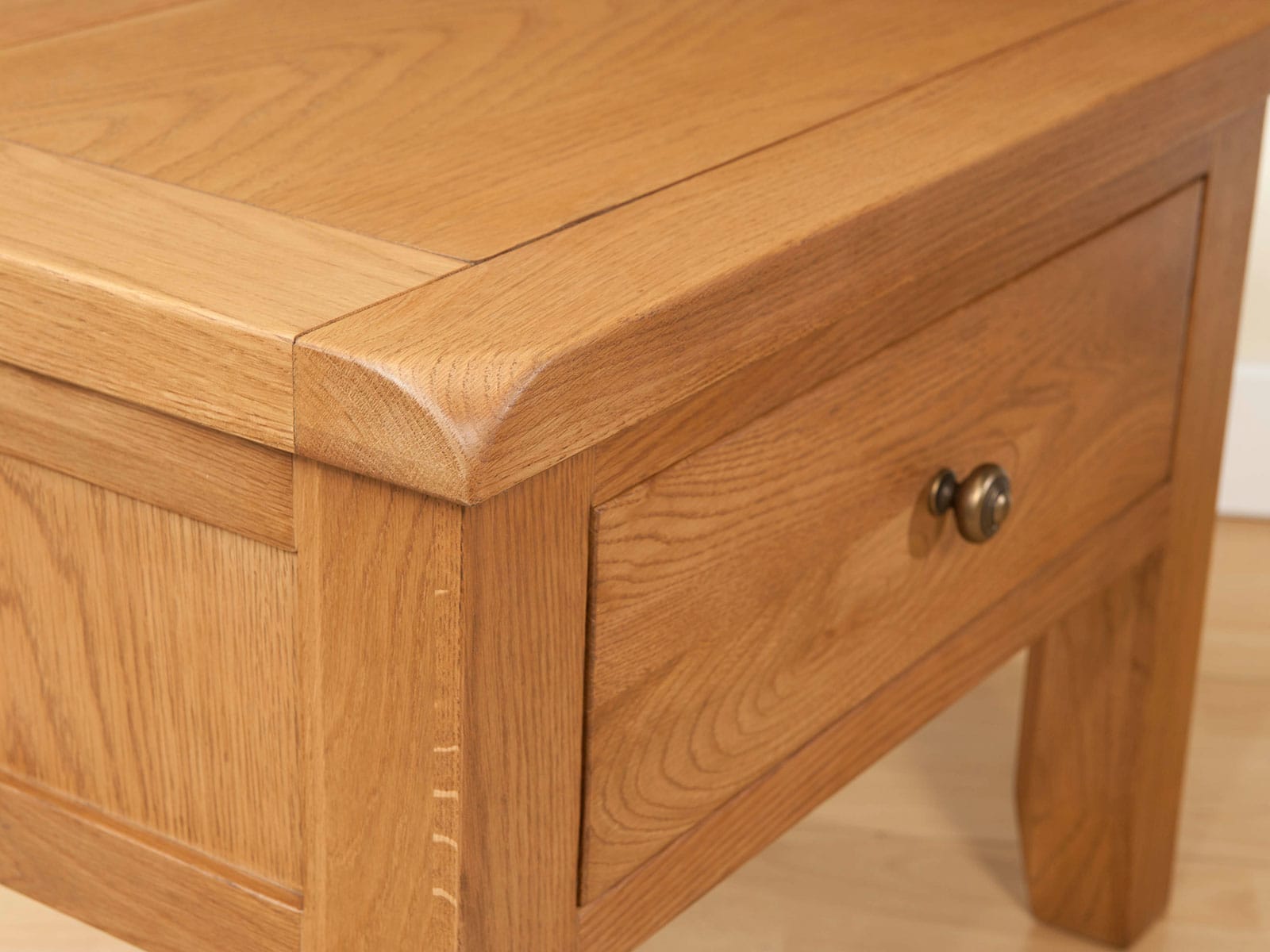 A range of rustic oak, which includes dining and occasional furniture. Each piece has a hand wax finish and is finished with antique brass hardware.