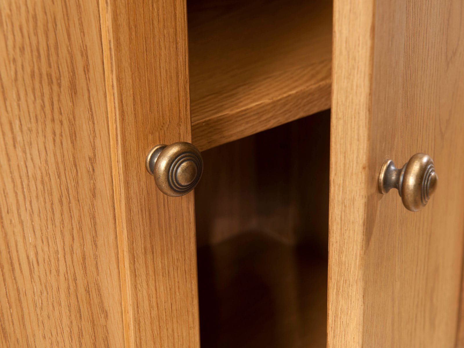 A range of rustic oak, which includes dining and occasional furniture. Each piece has a hand wax finish and is finished with antique brass hardware.