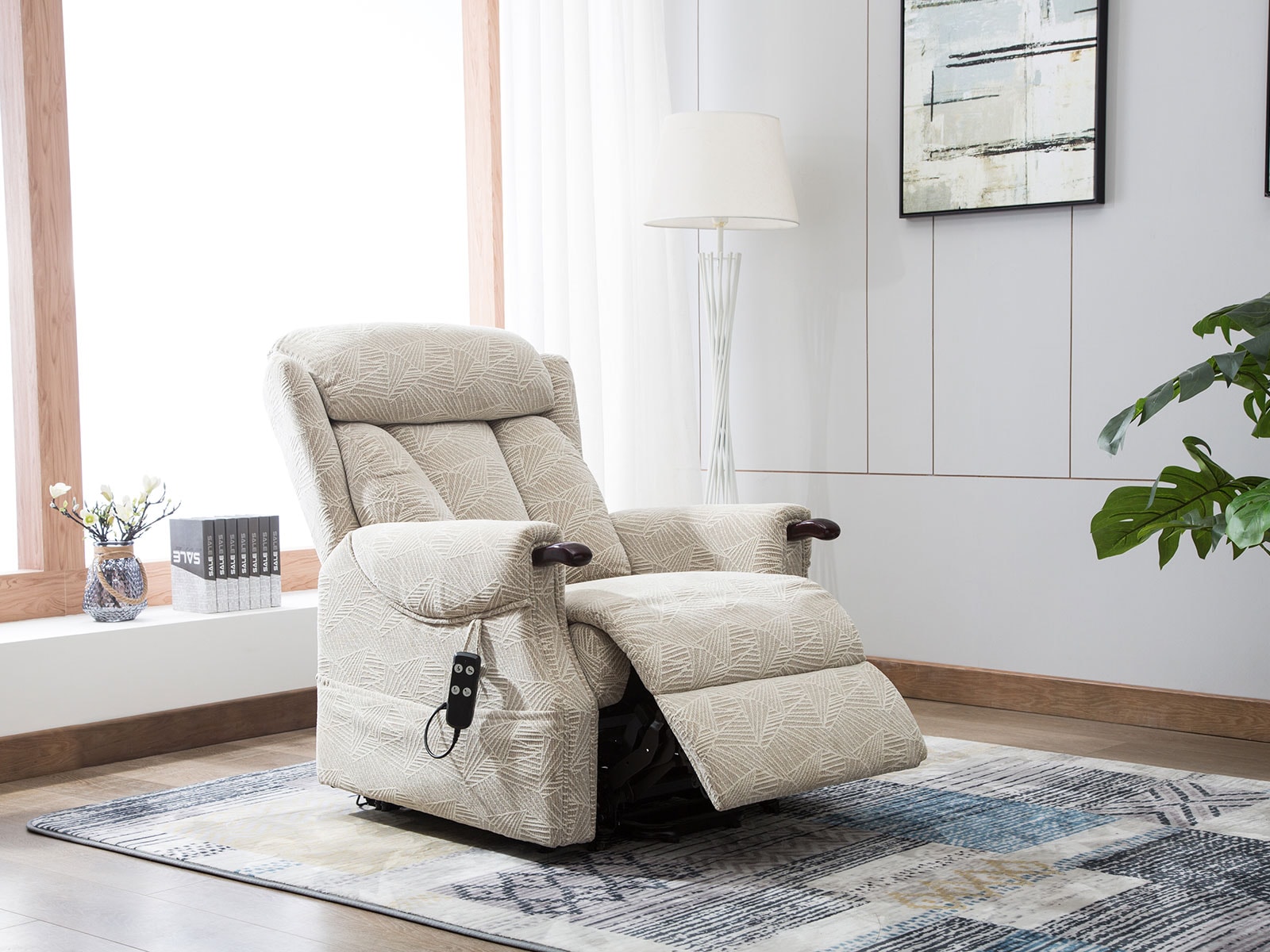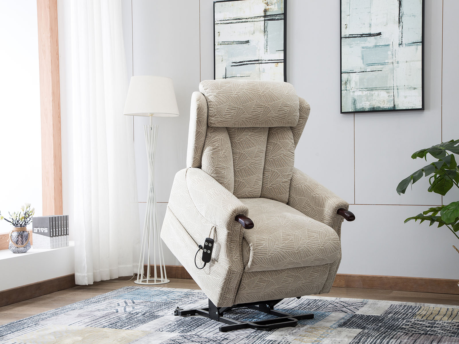 GFA Denmark Riser Recliner in Brushstroke Cream Fabric