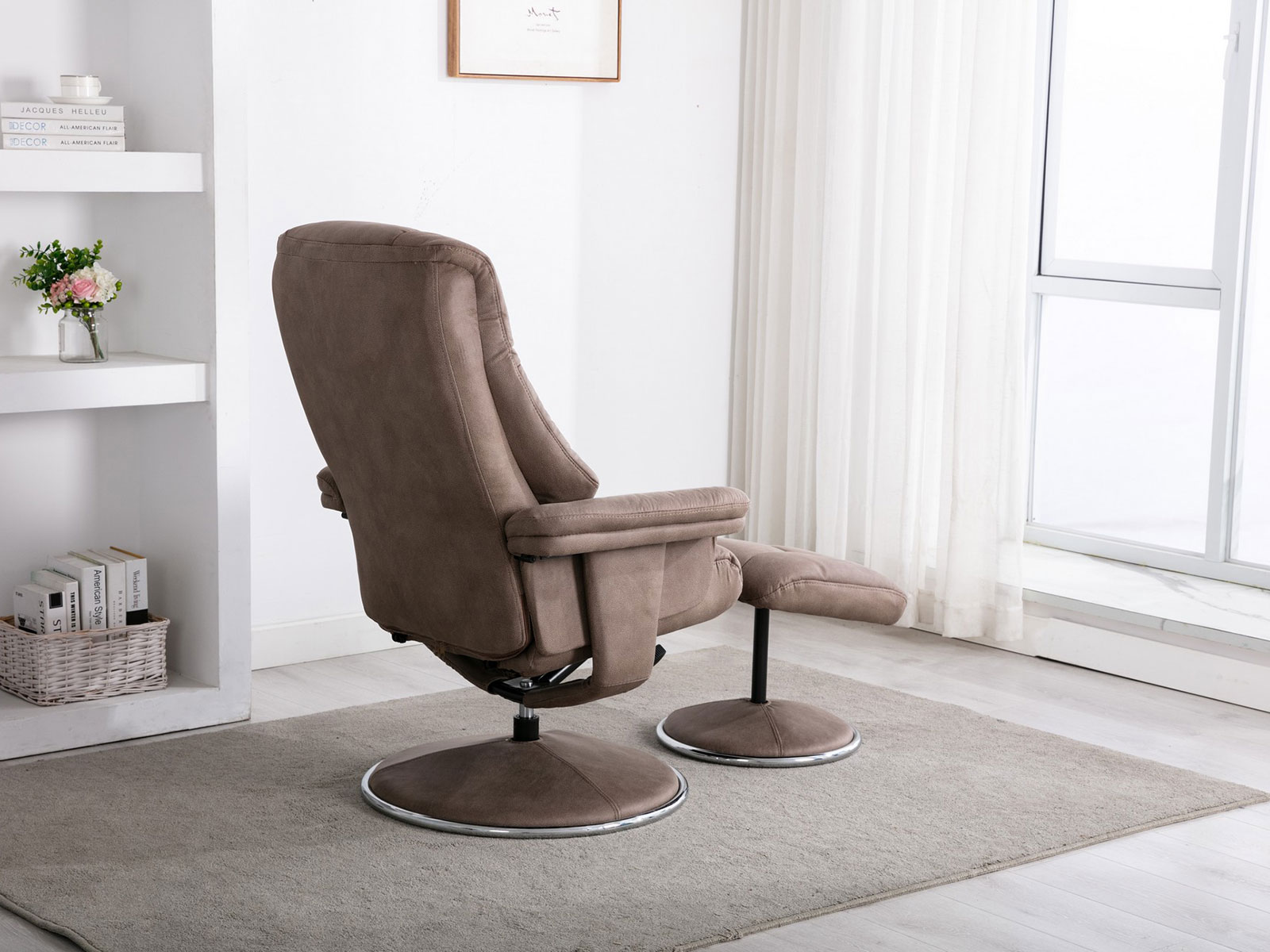 With its clean lines and contemporary style, the Denver swivel recliner offers sumptuous comfort at a great price! Its easy twist handle operates the manual recliner and the 360 degree swivel gives the user complete control. With its versatile offering of soft touch leather and fabric, the Denver will be the perfect addition to any home.