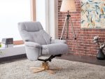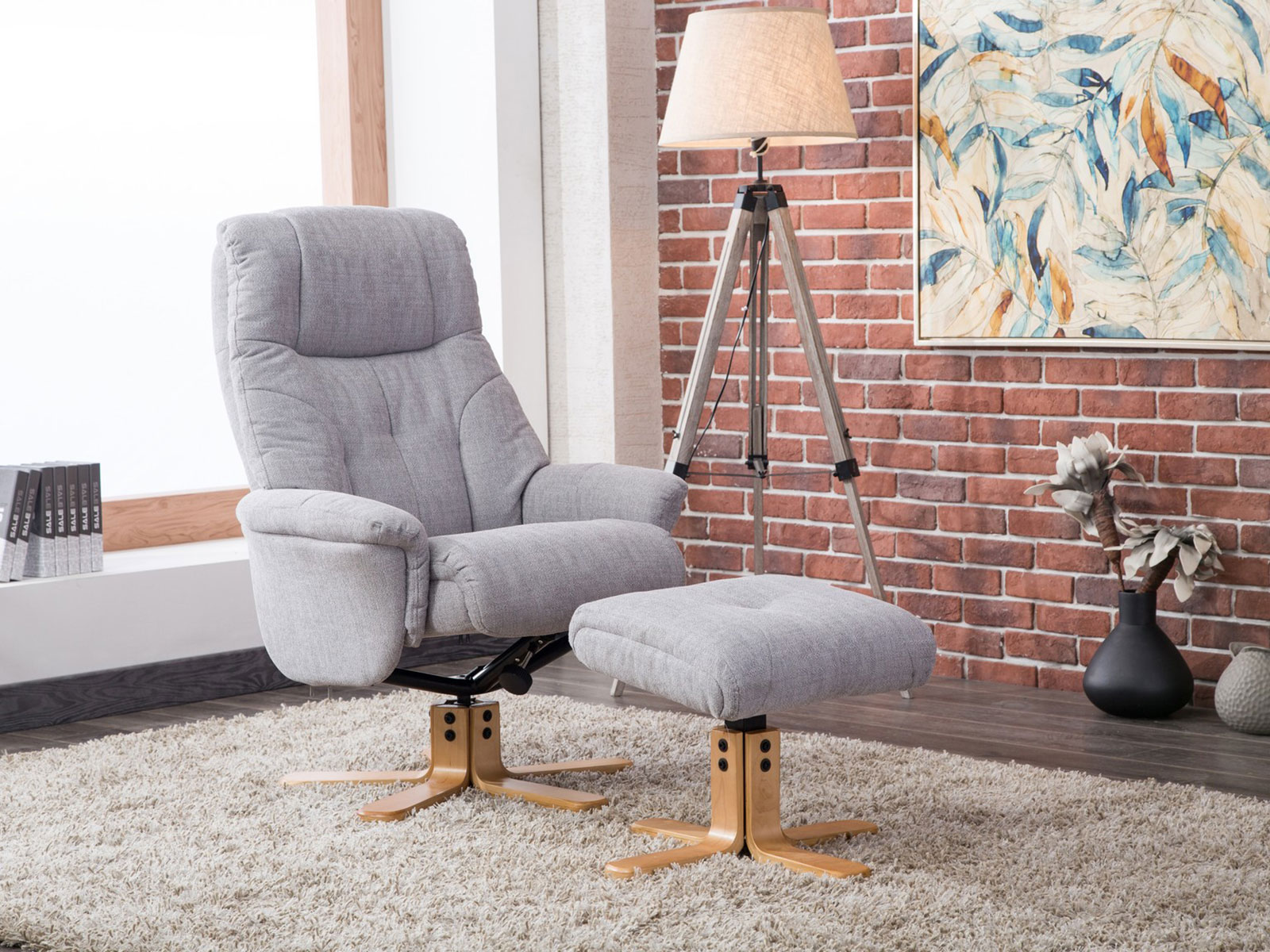 GFA Dubai Swivel Chair & Footstool in Lisbon Silver Fabric