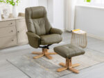 GFA Dubai Swivel Chair & Footstool in Olive Green Plush