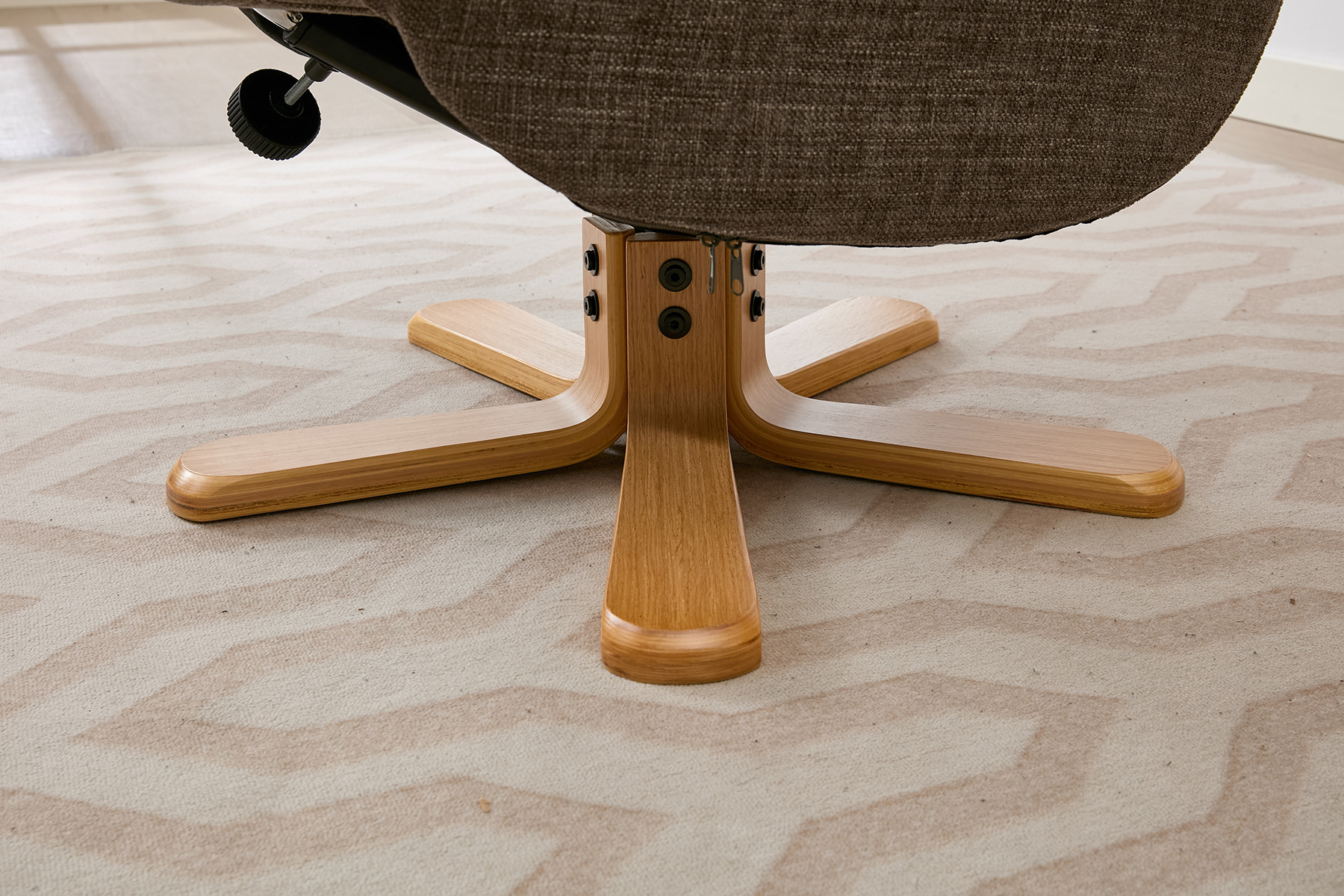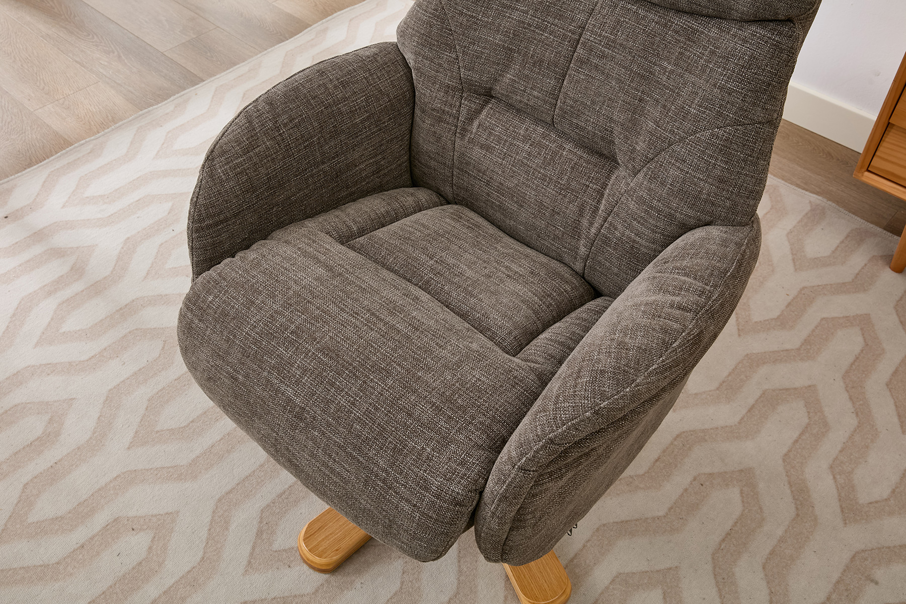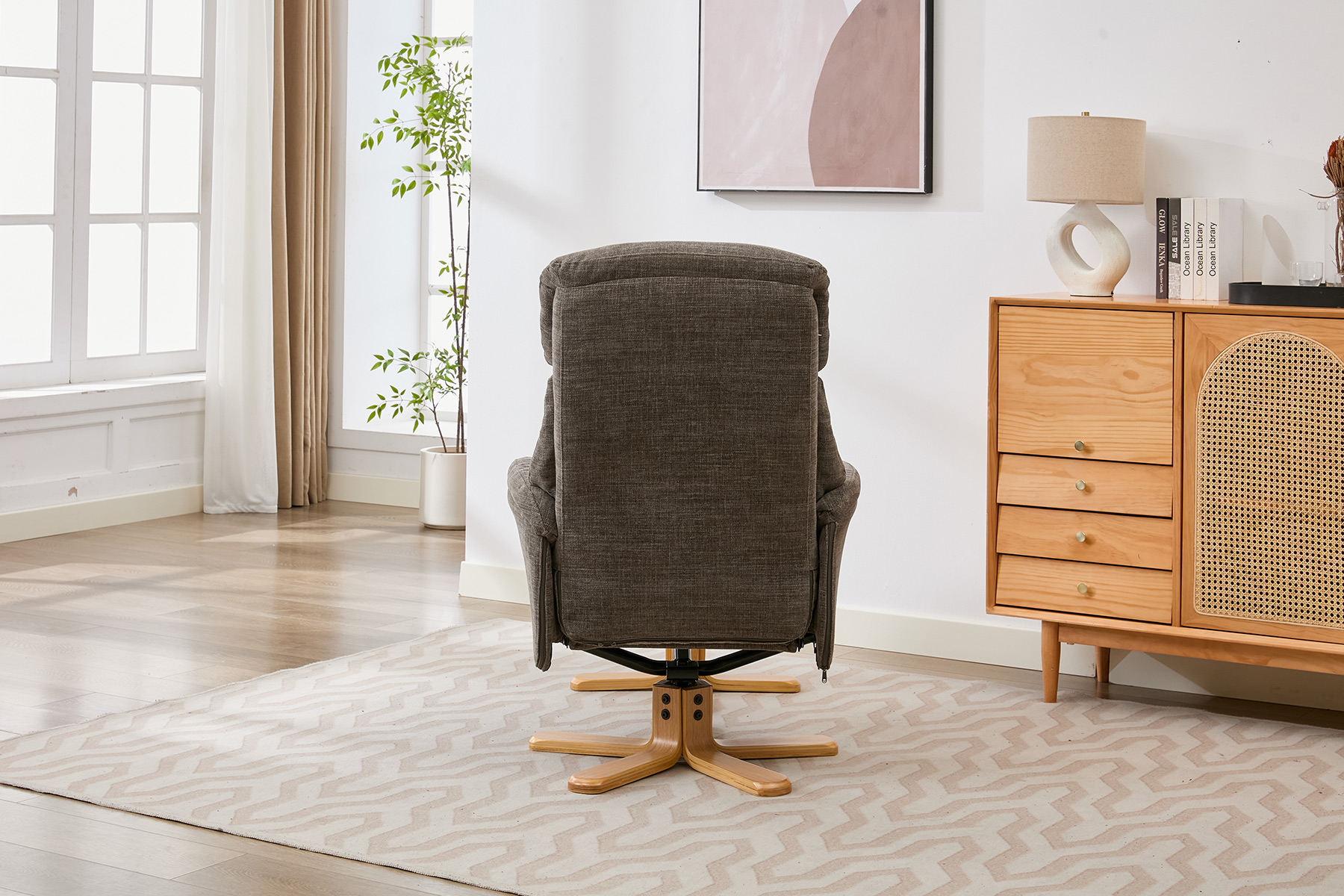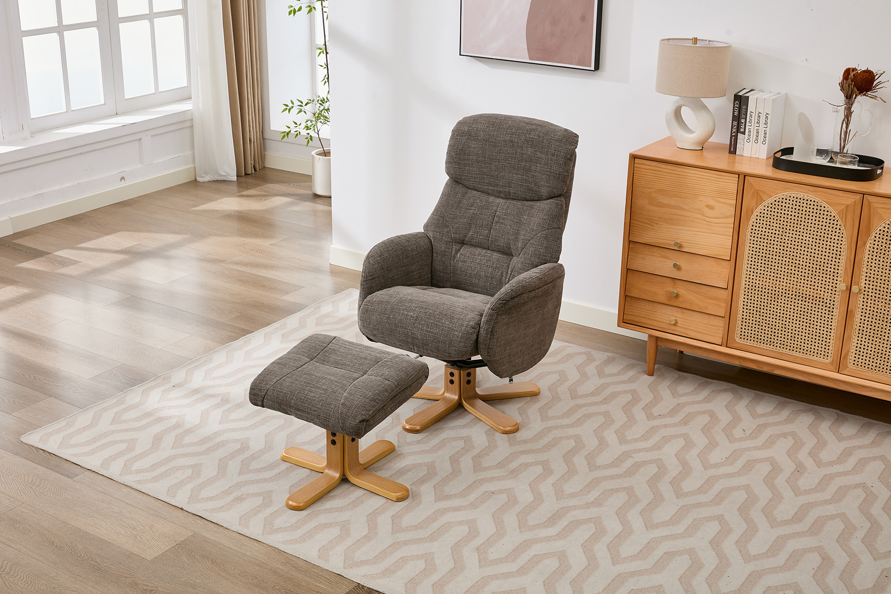The Eden swivel recliner and footstool set from GFA Upholstery offers the perfect combination of comfort, style and contemporary design. Featuring attractive mid-oak legs that bring a natural warmth to your living space, this elegant recliner set is designed to complement modern interiors with ease.