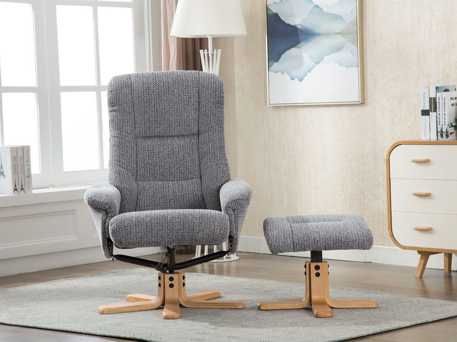 One of GFA’s best-selling designs! The Florida swivel recliner and footstool has a touch of rich, traditional and contemporary look and feel to it. It benefits from a 360-degree swivel and an easy to use recline mechanism. Available in a selection of soft fabrics along with its plush sit, the Florida is an impressive addition to any home!