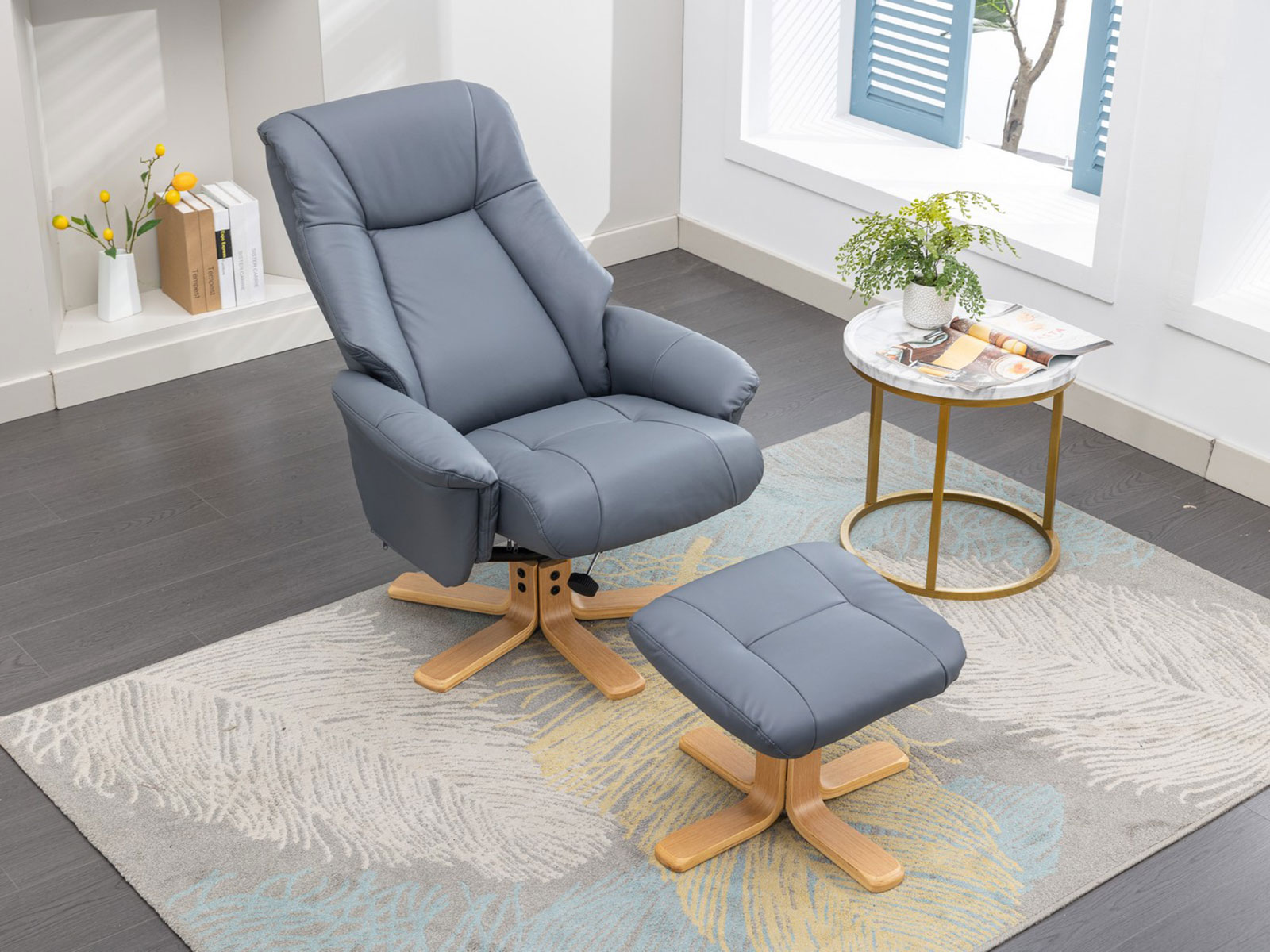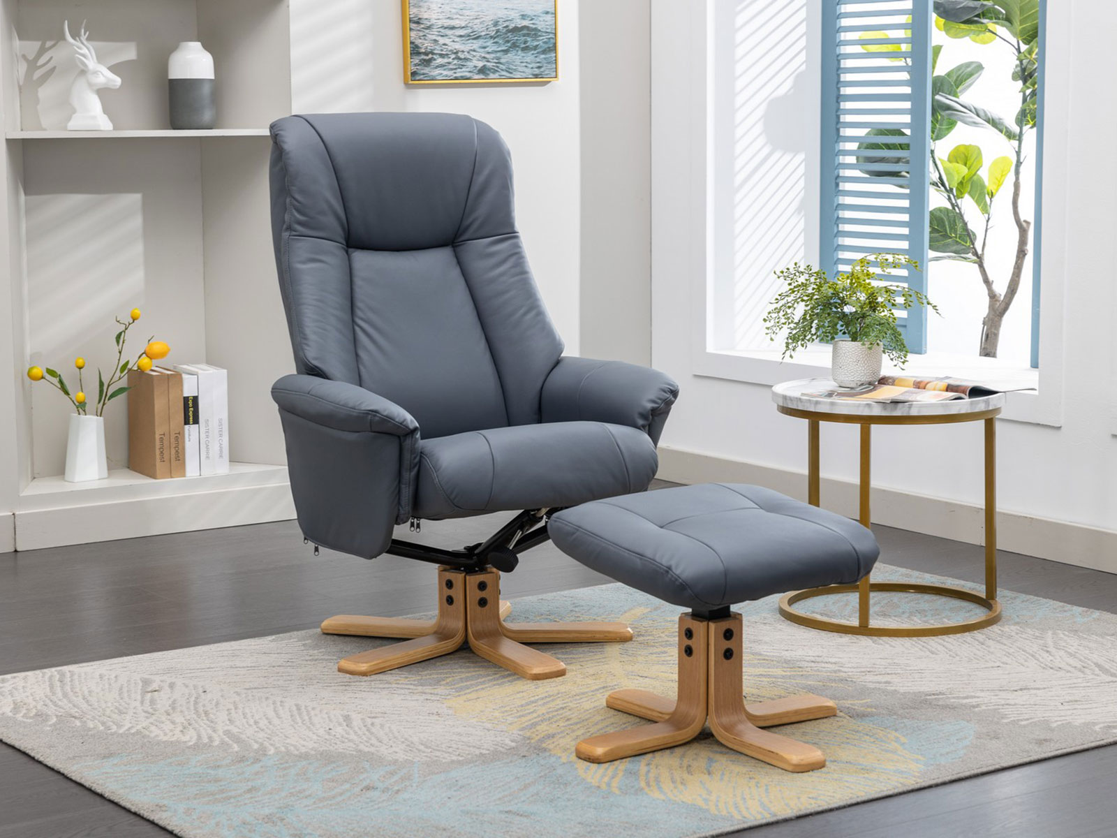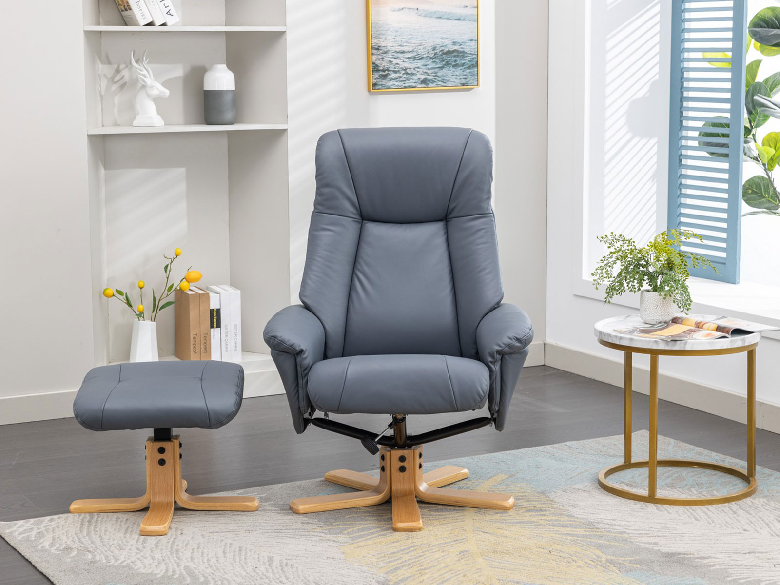 GFA Hawaii Swivel Recliner & Footstool in Petrol Blue Faux Leather