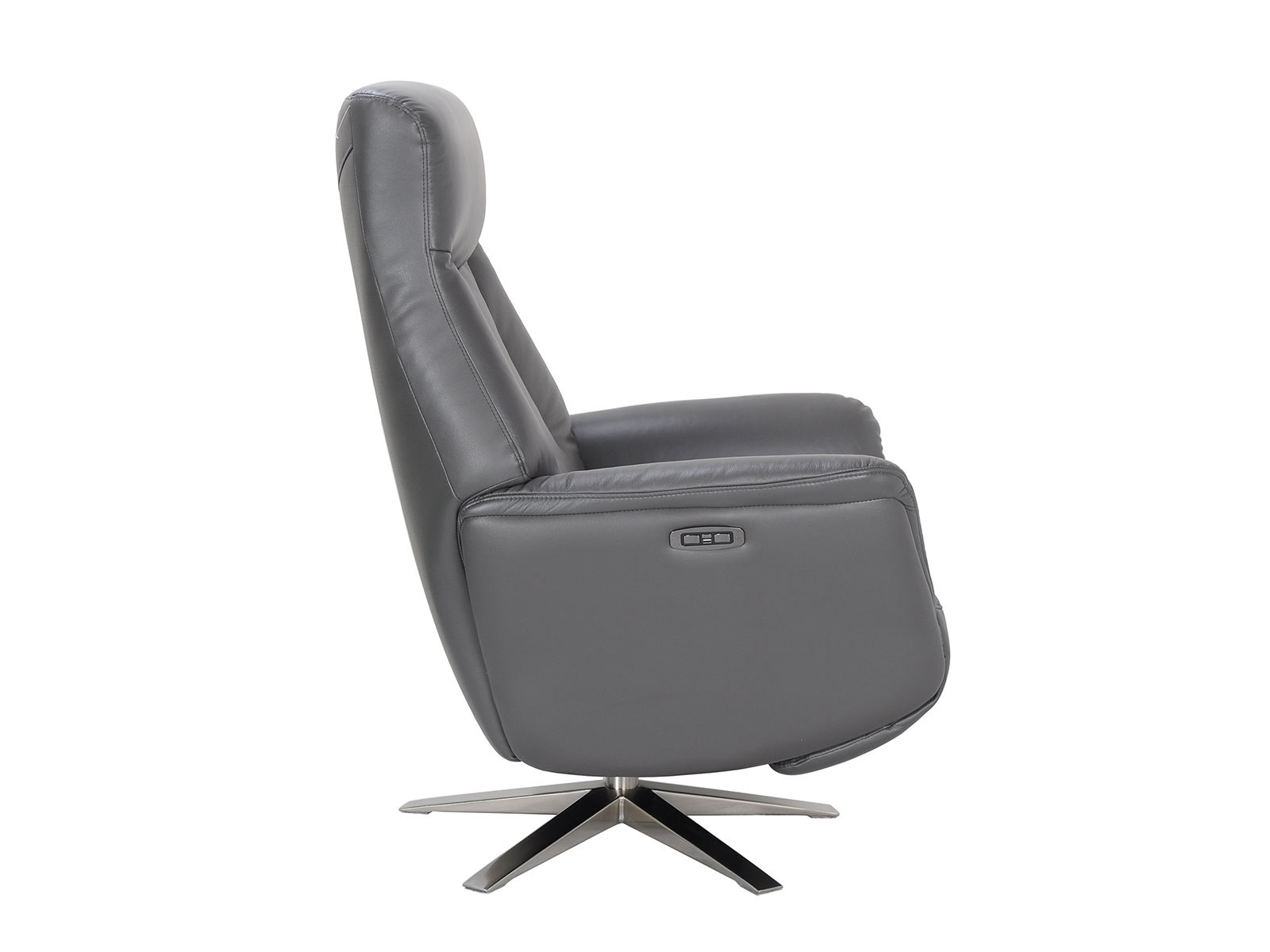 Relax and unwind at the touch of a button in the Houston power recliner. Featuring a zero gravity reclining motion for effortless optimum relaxation, a 360 degree swivel and comfy, contoured foam cushioning with neat stitching detail and a handy USB socket located on its side