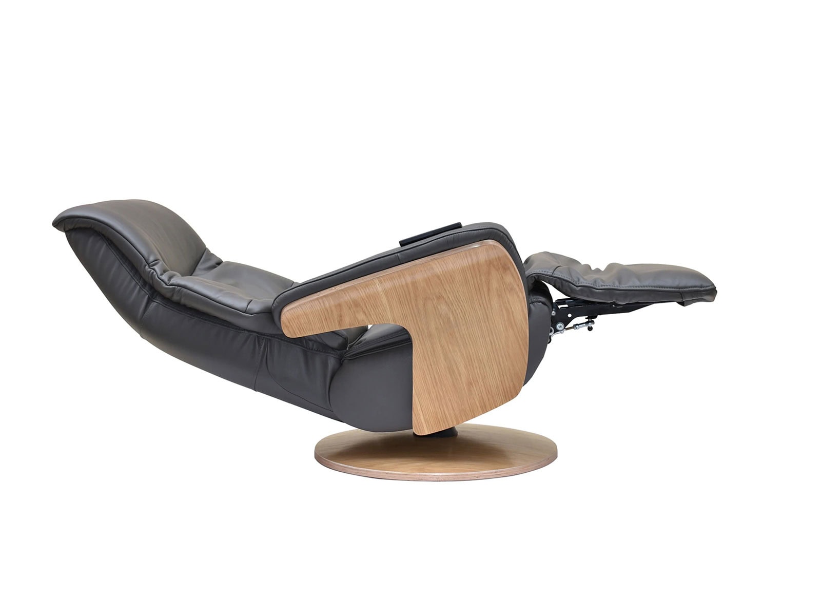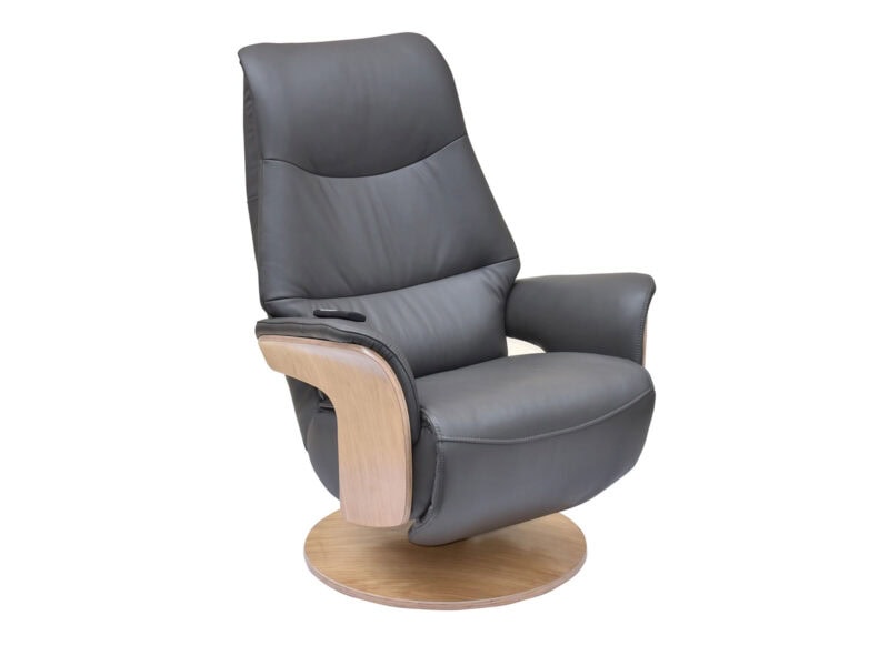 GFA Iowa Swivel Recliner & Integrated Footstool in Charcoal Leather