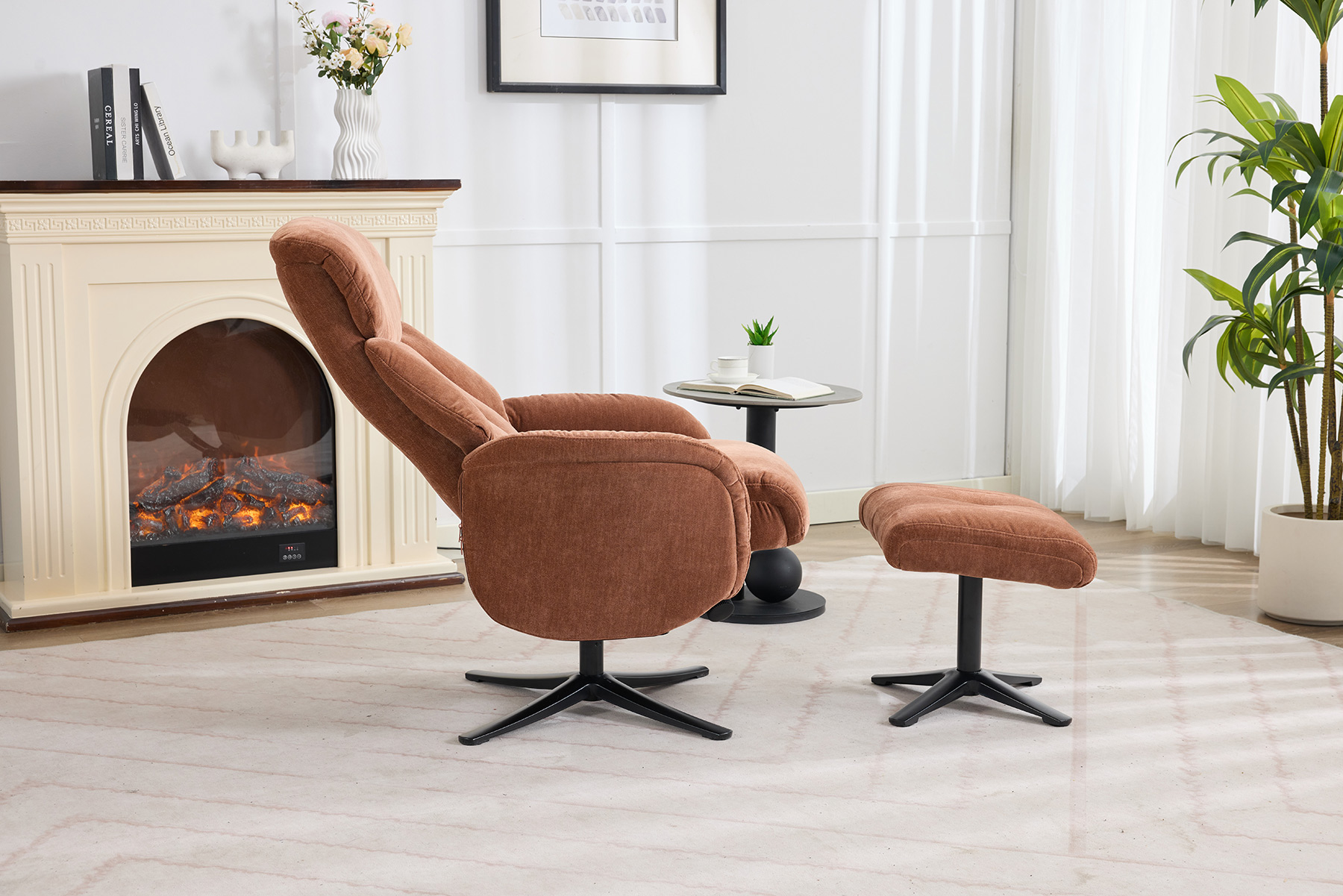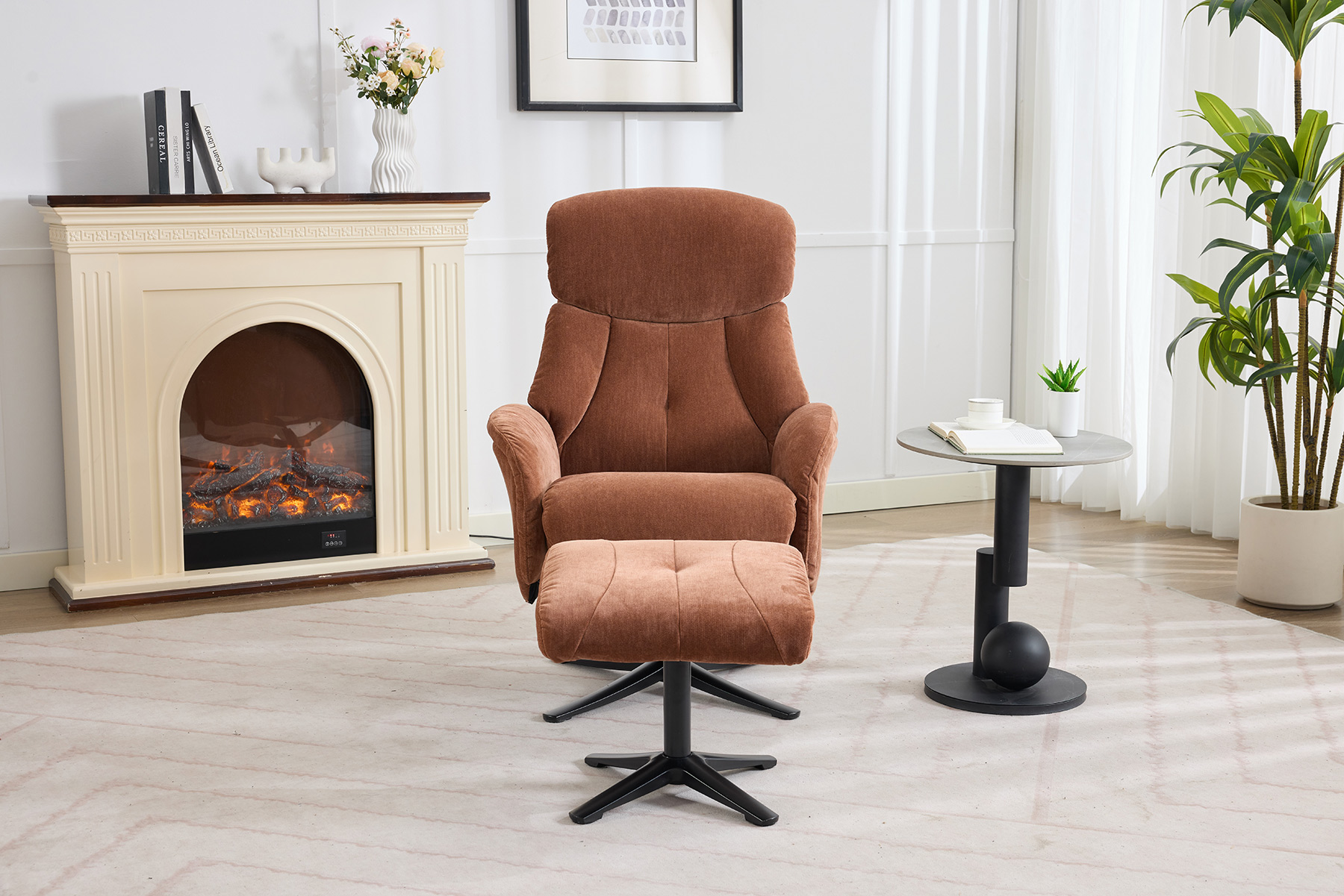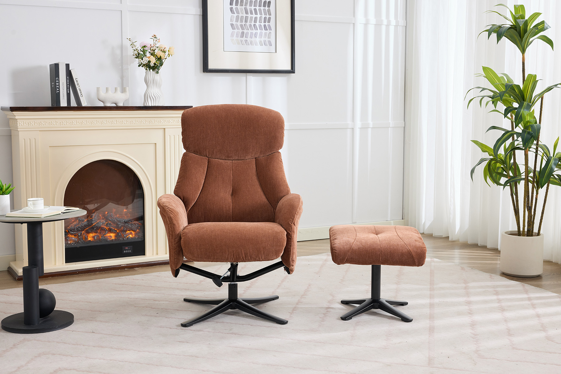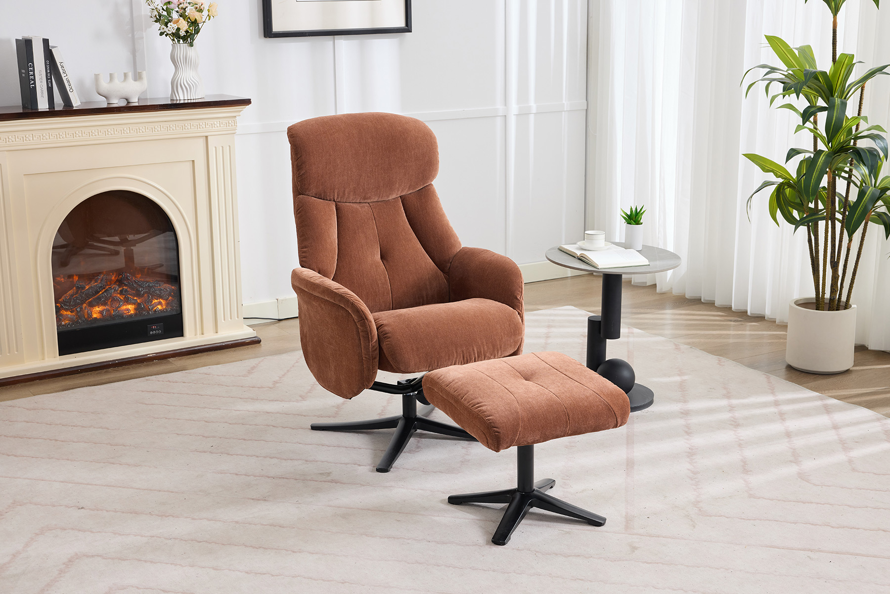 The easy-to-use manual reclining handle allows you to adjust the chair to your preferred position, while the smooth swivel base provides added flexibility and convenience. A matching footstool enhances the overall comfort, creating the perfect place to relax after a long day.