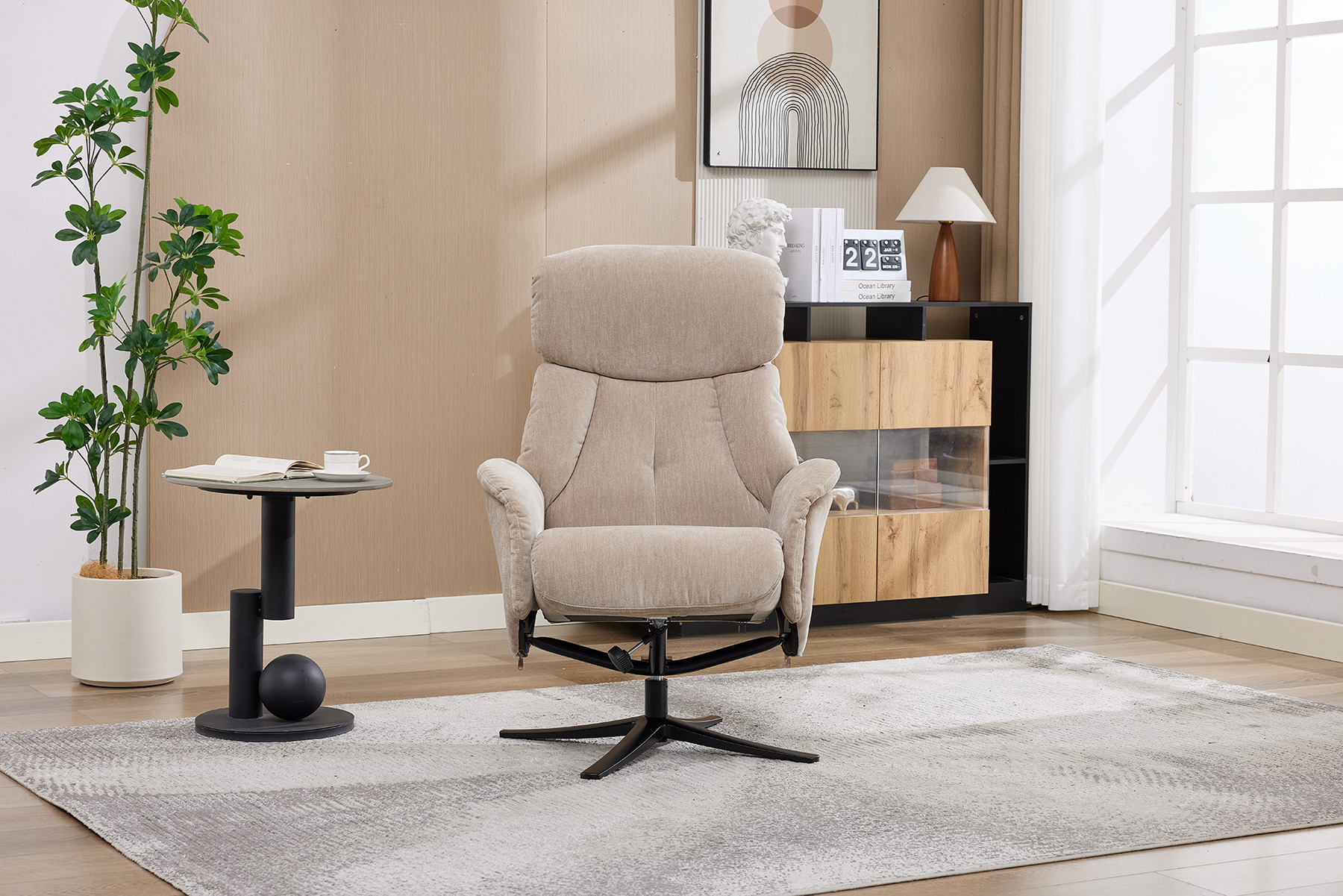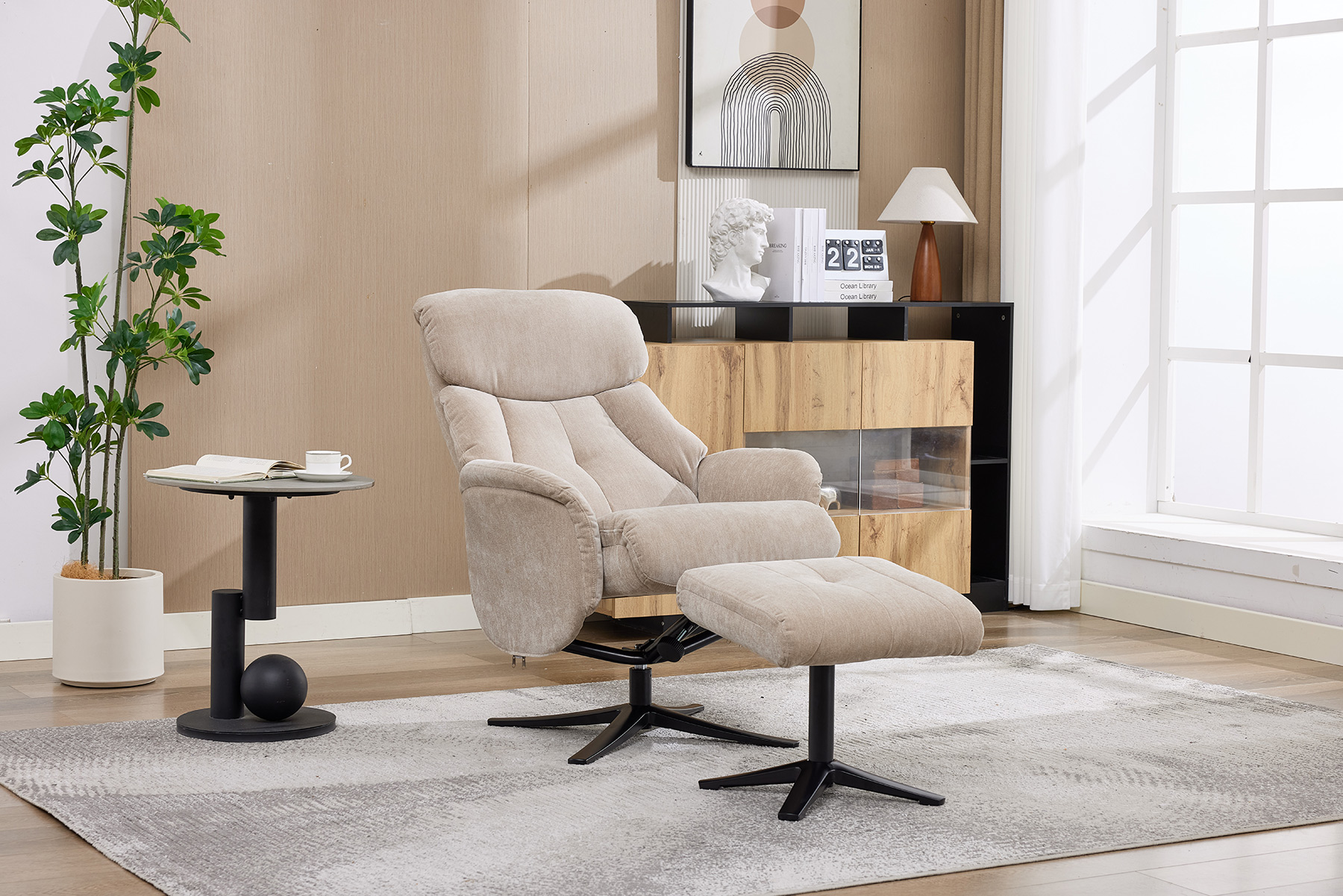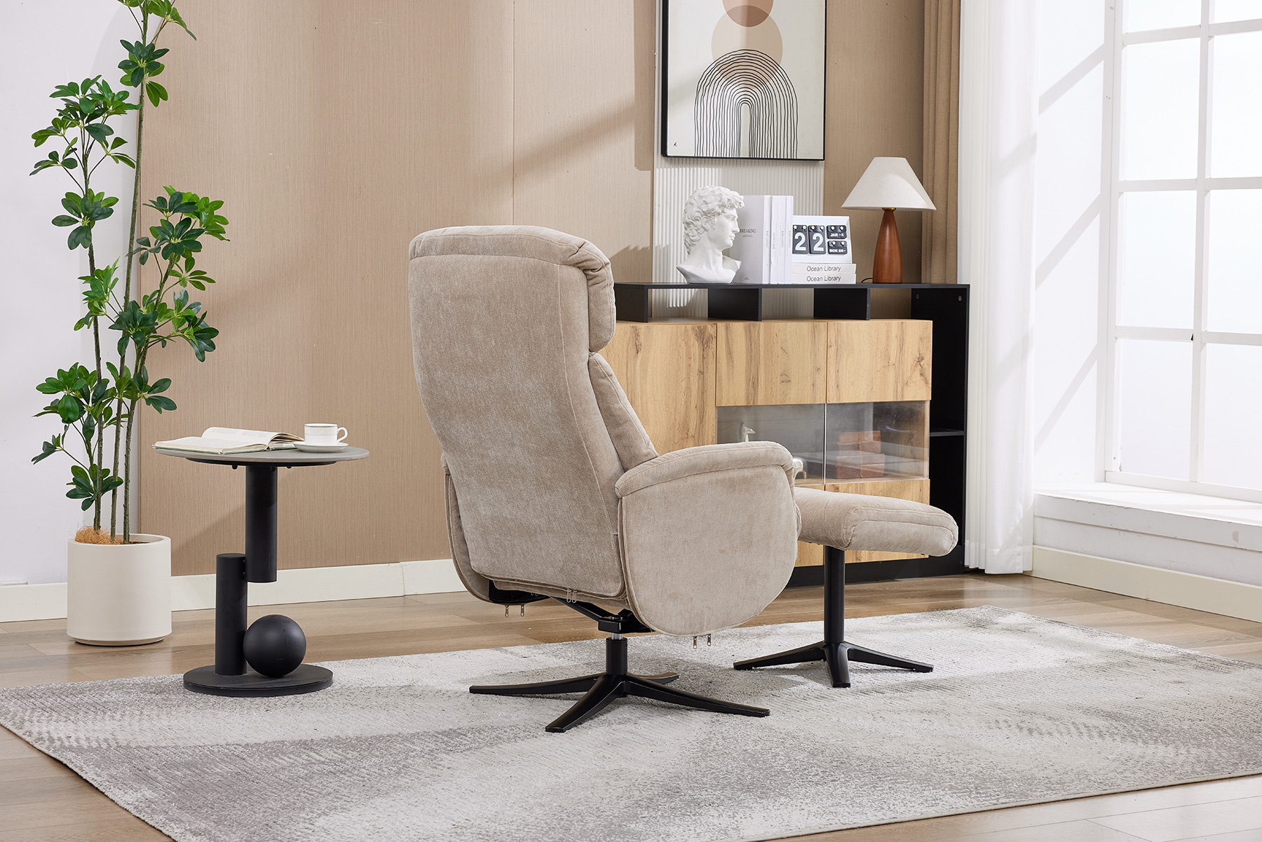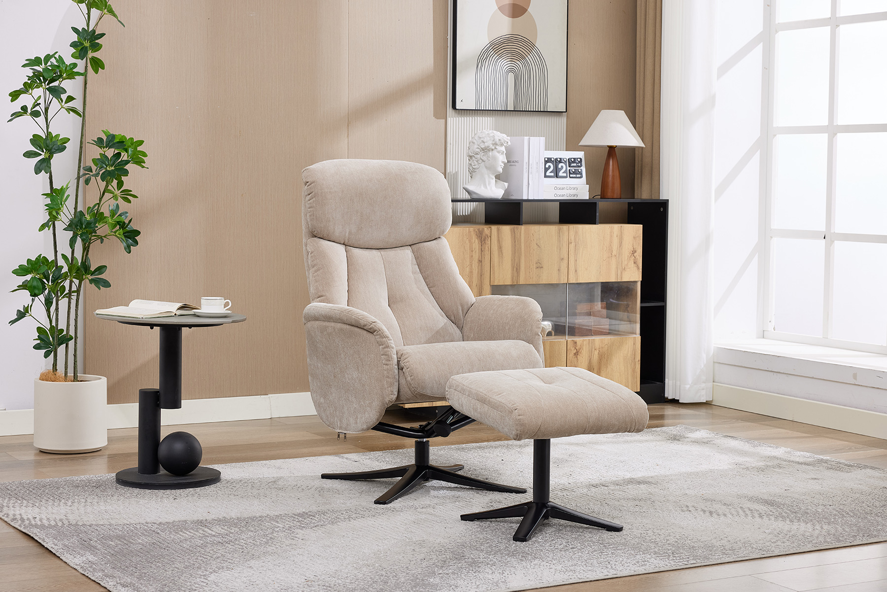 The Lucia swivel recliner and footstool by GFA Upholstery delivers stylish comfort and modern functionality for today’s homes.