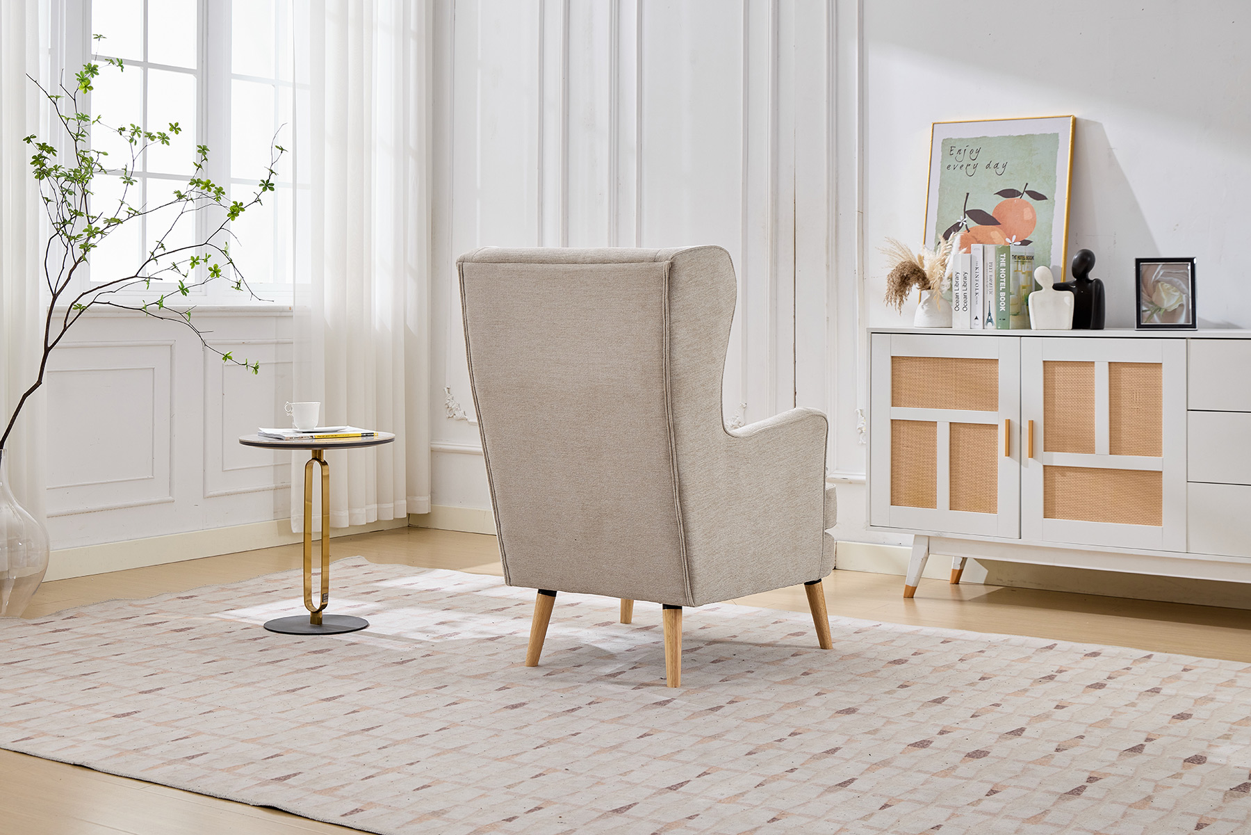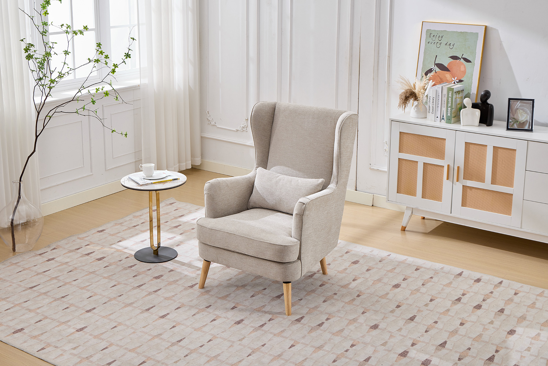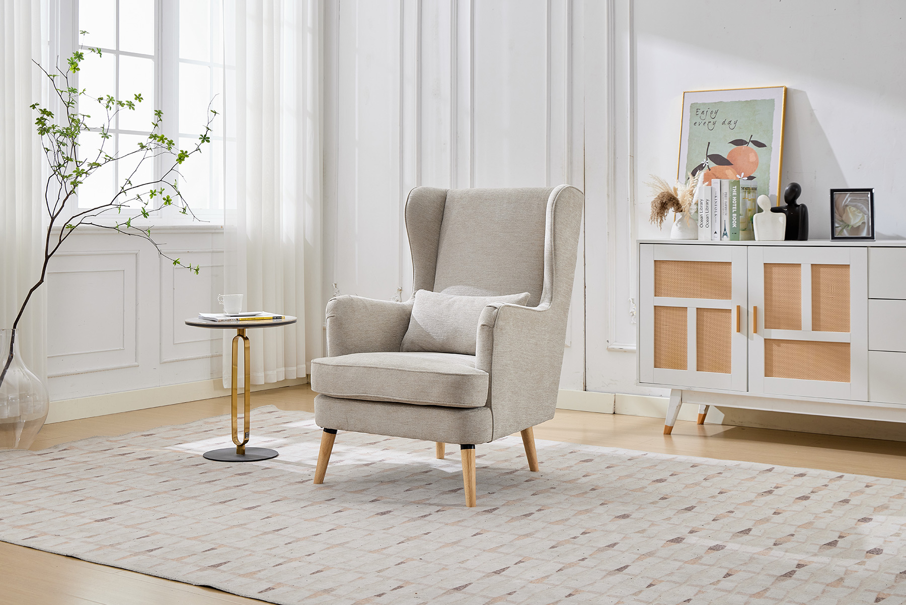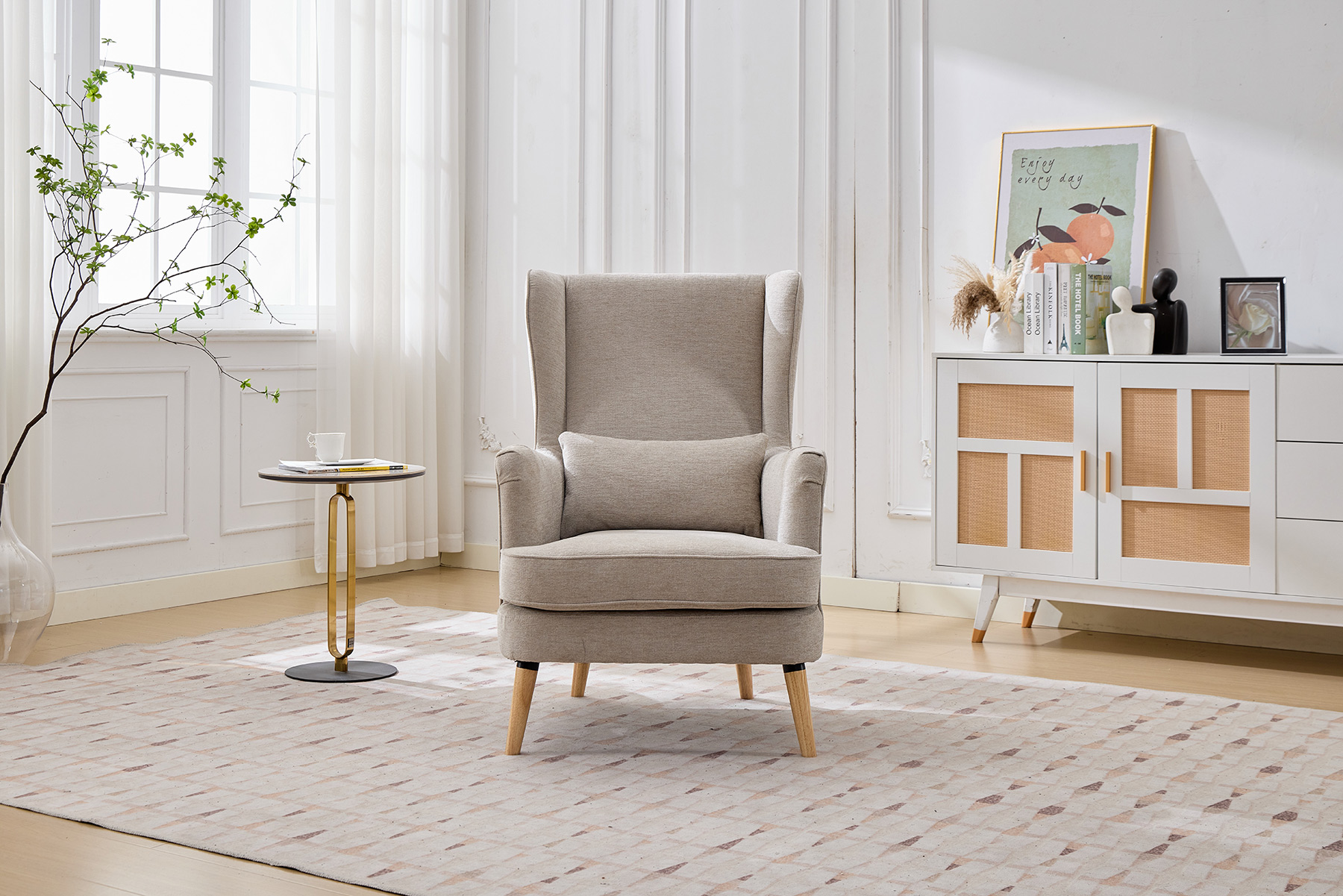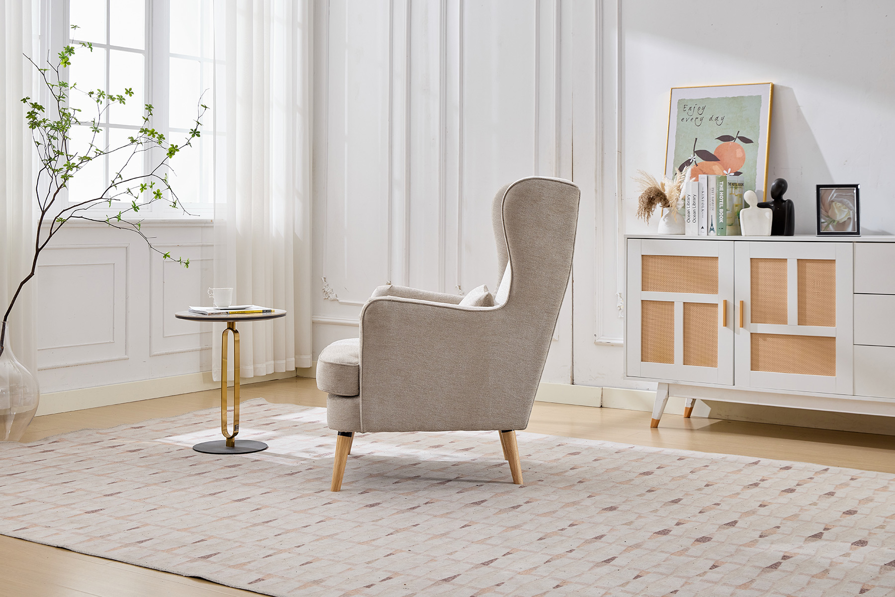 • Classic Fireside Design: Elegant high-back chair with a timeless silhouette.