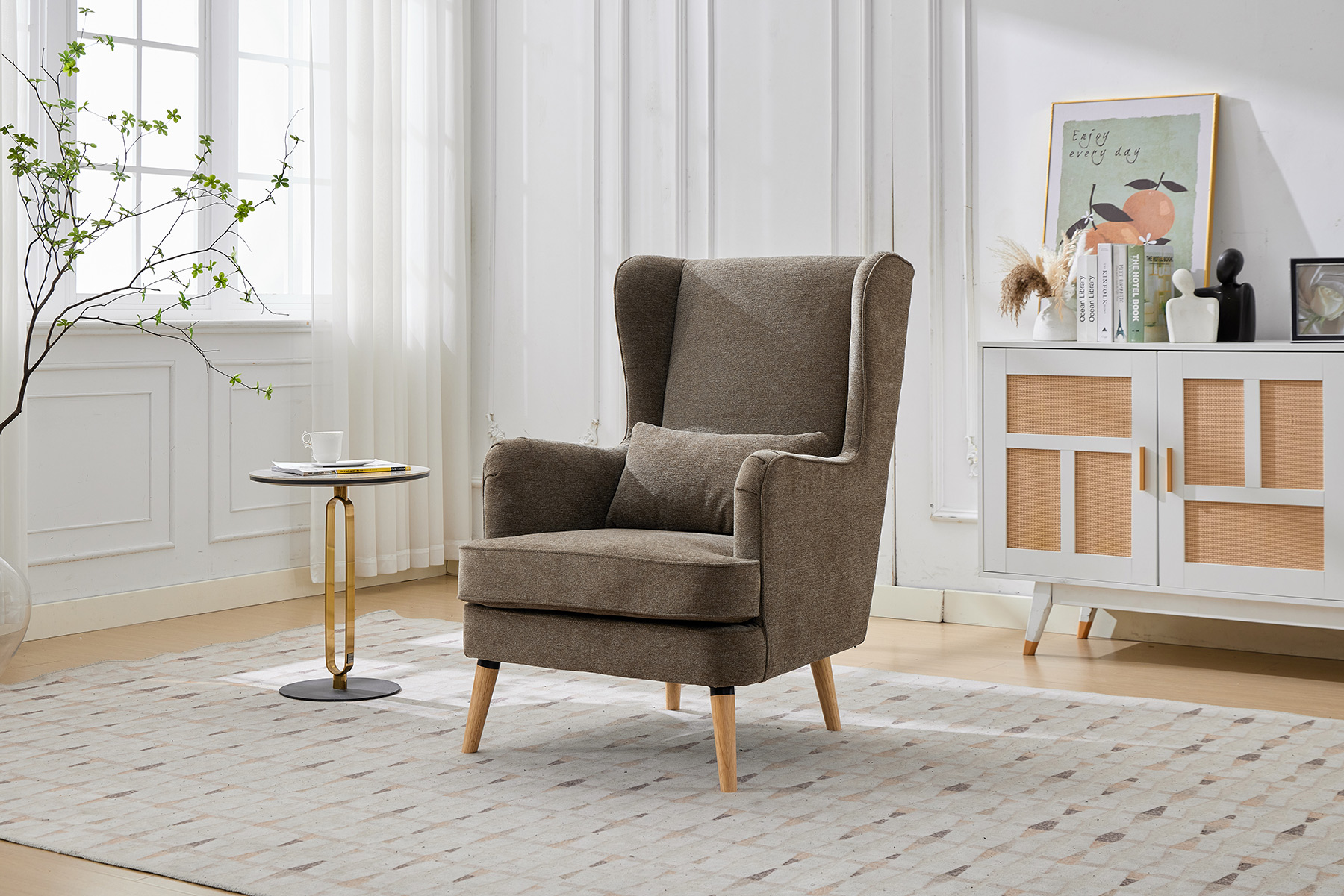 - Classic Fireside Design: Elegant high-back chair with a timeless silhouette.