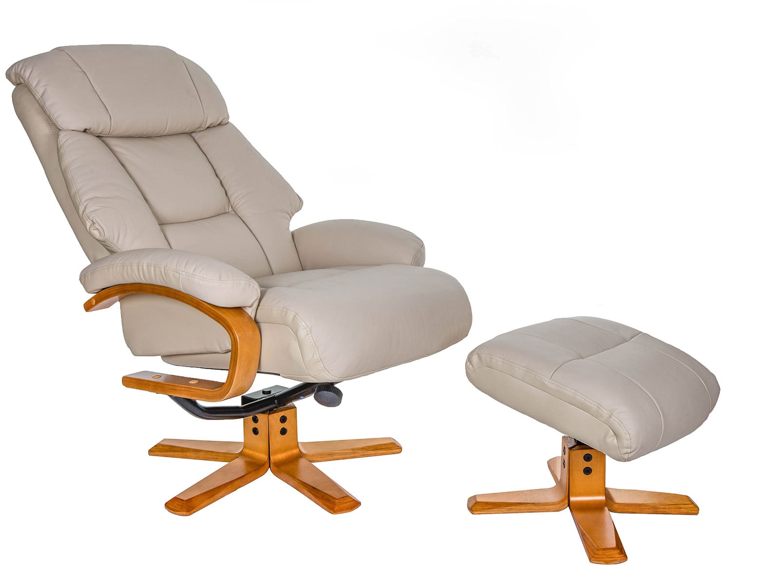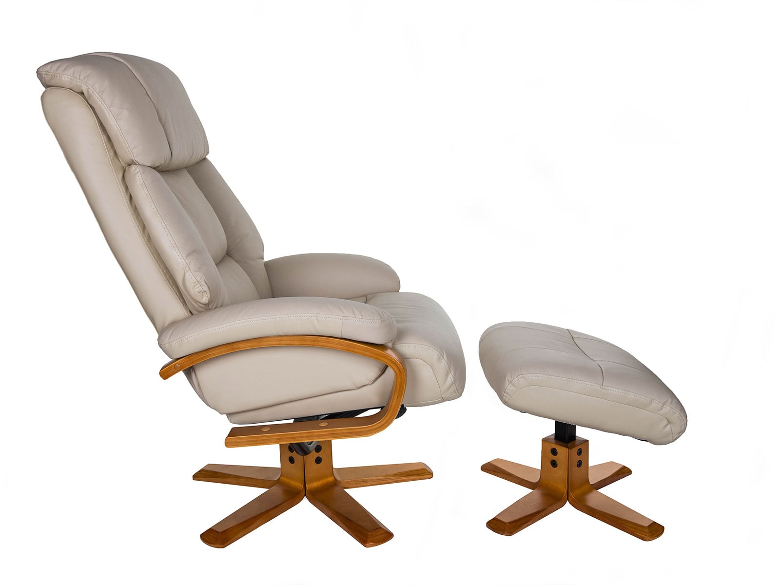GFA Nice Swivel Recliner & Footstool in Ivory Leather