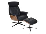 GFA Nordic Swivel Recliner & Footstool in Black Leather