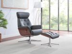 The Nordic is amply proportioned and accompanied with a matching ottoman for the ultimate seating experience. Made from a Walnut wood casing and upholstered in luxurious imported leather with button back detailing, over moulded foam cushioning. The definition of luxury. It features an adjustable headrest and stylish manual lever, to aid you effortlessly into your desired reclined position.