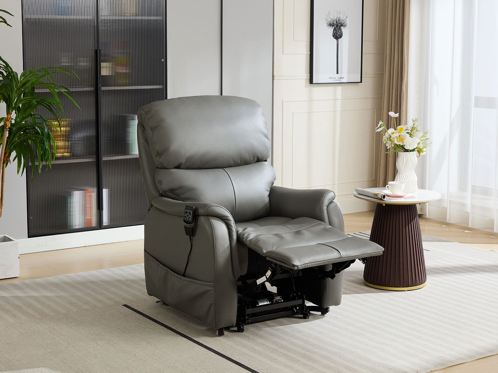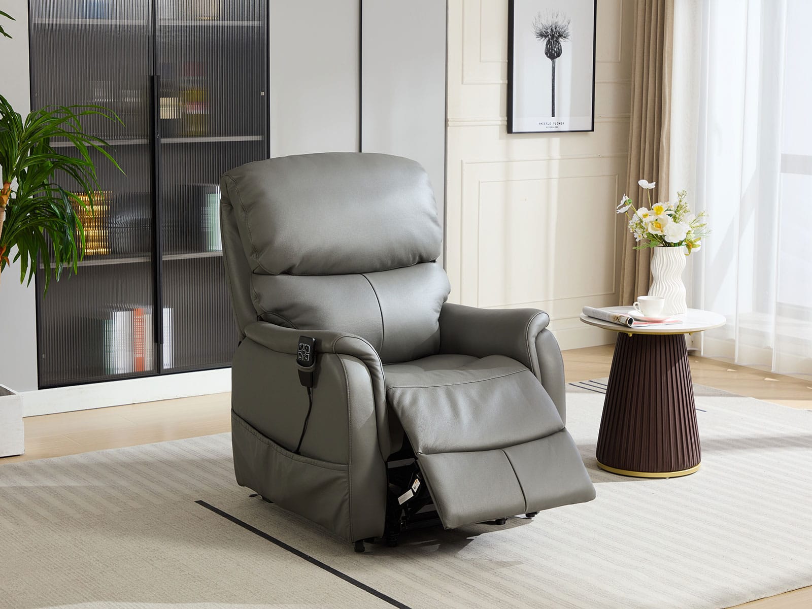 leather will fit right in. The dual motors help you sit down and stand up effortlessly. It feels as comfortable as it looks, with sumptuous padding to the seat, back and arms.
