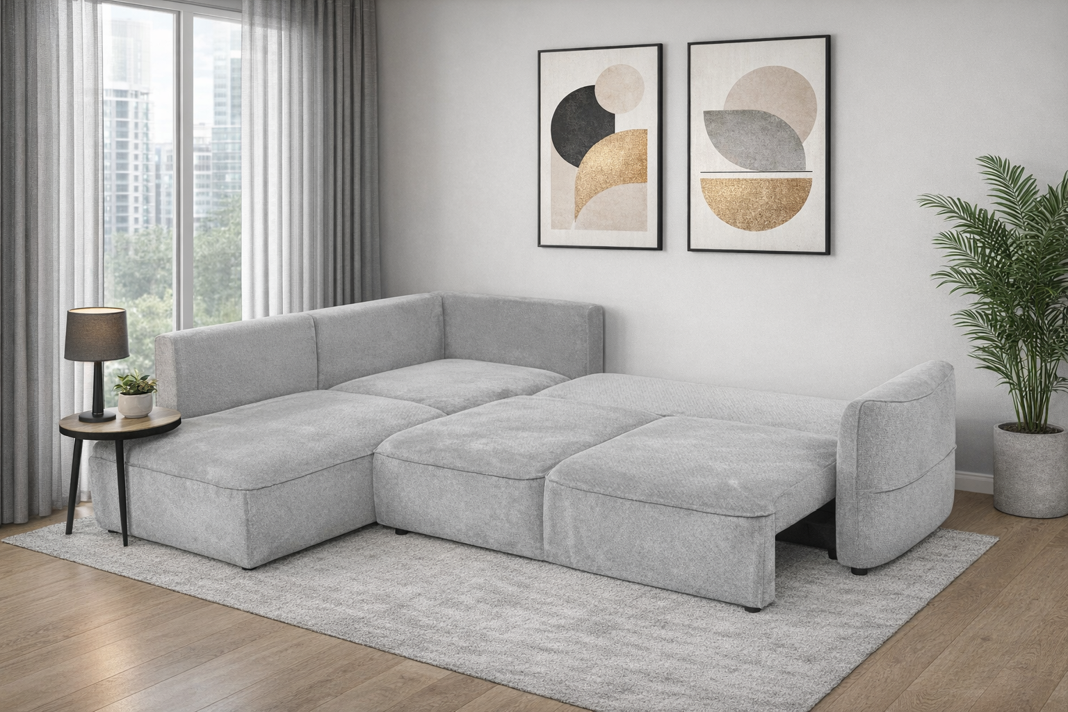 • Corner Sofa Bed Design: Stylish sofa that converts easily into a comfortable bed.