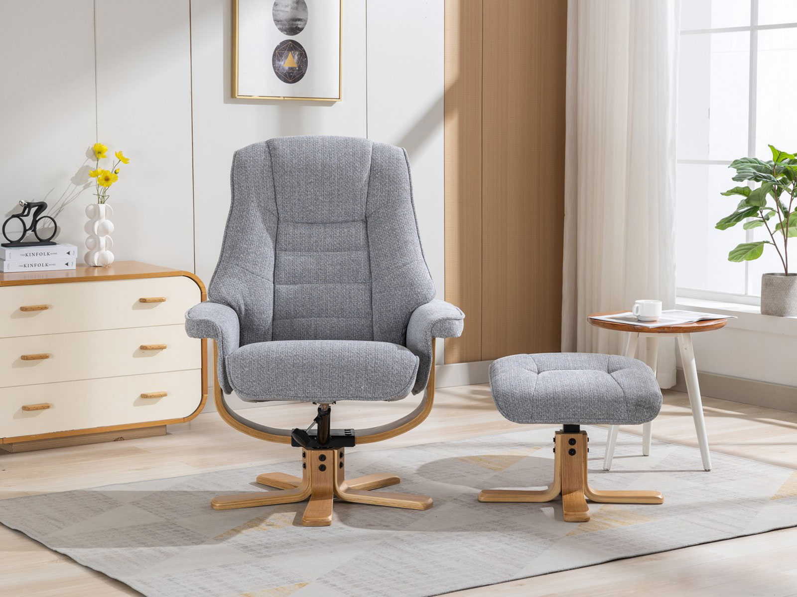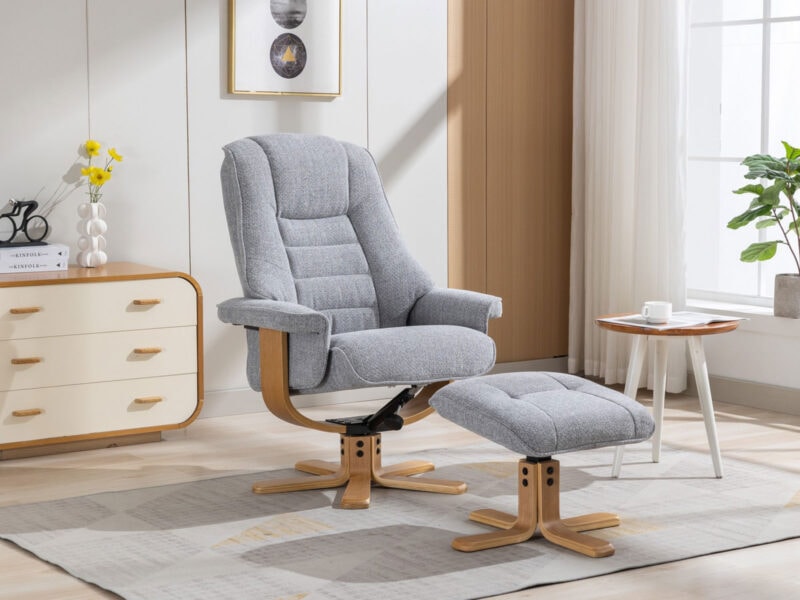 GFA Sardinia Swivel Recliner & Footstool in Chacha Dove Fabric