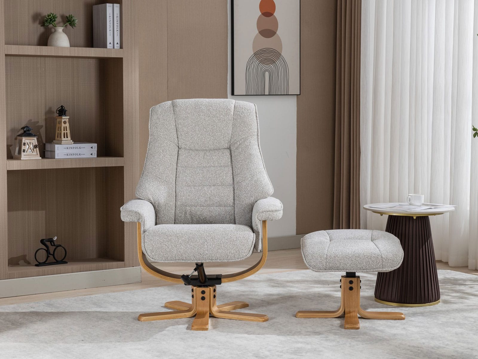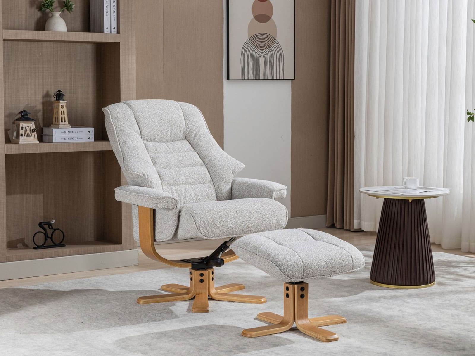 GFA Sardinia Swivel Recliner & Footstool in Greige Fabric