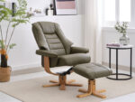 GFA Sardinia Swivel Recliner & Footstool in Olive Green Leather