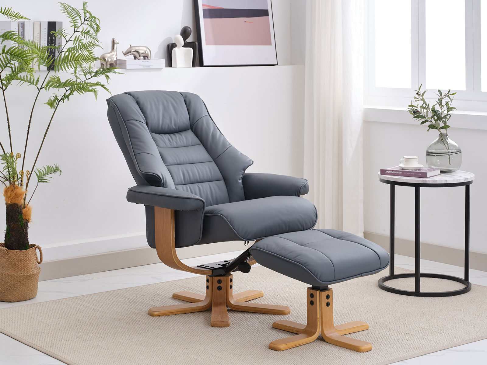GFA Sardinia Swivel Recliner & Footstool in Petrol Blue LeatheR