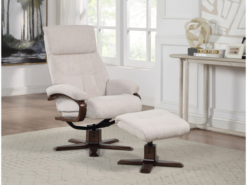 The Vienna Swivel Recliner & Footstool is a true standout piece, that is sure to add a touch of elegance and sophistication to any room. This Swivel Recliner & Footstool is available in a range of versatile fabrics and leathers, to match any décor. What really sets the Vienna apart from the rest is its wooden arm. This stylish and unique element adds an extra touch of class to the piece, making it a true statement piece. Whether you’re looking for a comfortable spot to relax and unwind, or simply want to add a touch of style to your living space, the Vienna is an excellent choice.