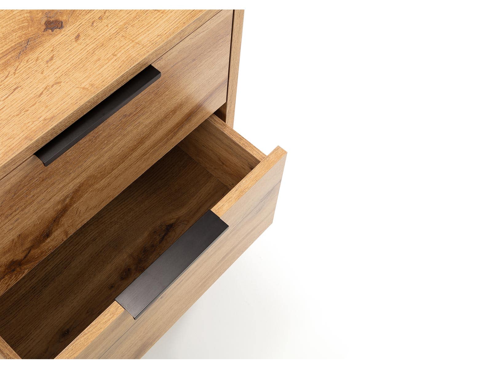 • Modern oak finish with contrasting black legs and handles