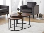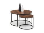 The Bellini Round Nesting Coffee Table ensures long lasting durability, crafted from black coated metal and MDF in a walnut foil finish. This set of two coffee tables boast a contemporary, stylish design with an industrial feel. Ensuring a space saving solution, the coffee tables slot together as and when they are in use.