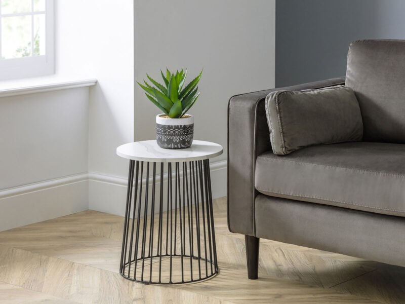 The Broadway Lamp Table is a style centrepiece for any modern living room. Crafted from a black powder coated steel base with a round white marble finished top, this lamp table is on-trend with a contemporary industrial feel.