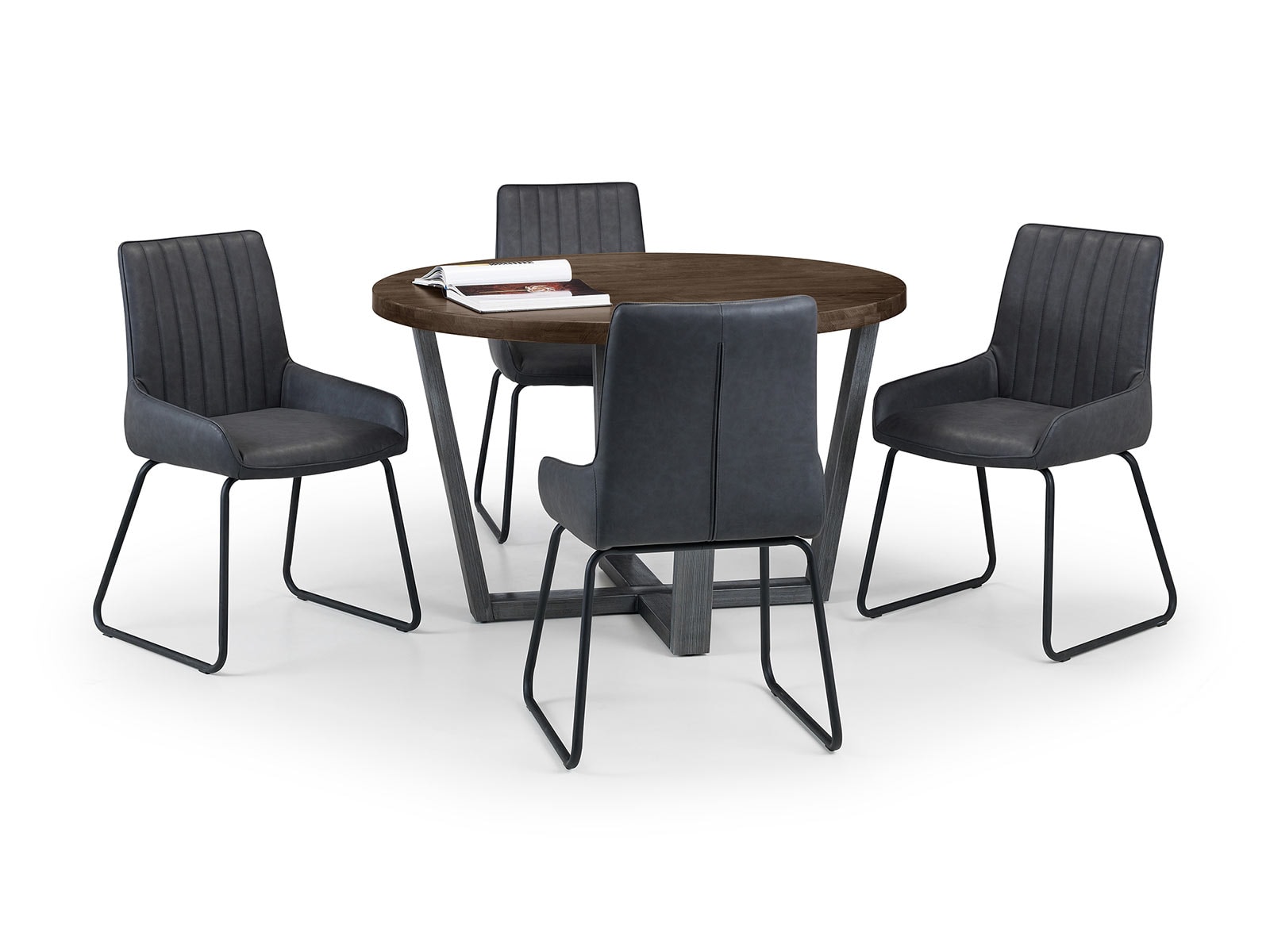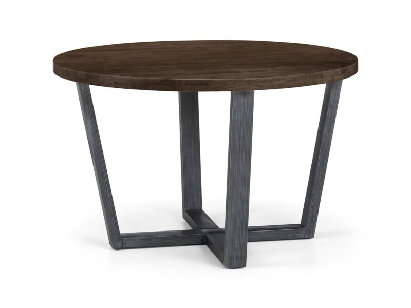 Made from solid oak, this round dining table offers a dark oak finish emphasising the stunning natural wood grain. The Brooklyn Round Dining Table offers a vintage edge featuring industrial trestle style metal legs. This spacious table can seat up to 4 people, perfect for a wide range of modern décor. Part of the Julian Bowen Brooklyn Dining and Occasional Collection, also a great match with the Soho Dining Chairs.