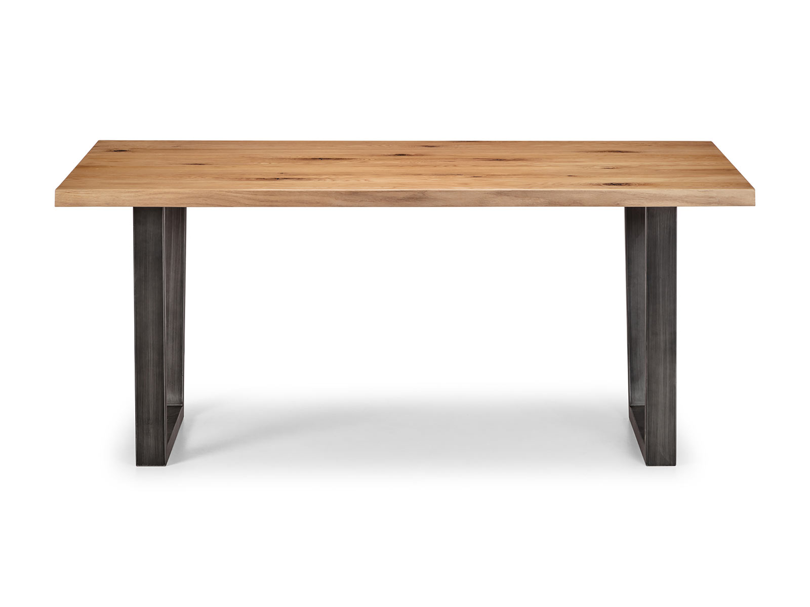 Made from solid oak, this dining table offers a rustic finish emphasising the stunning natural wood grain. The Brooklyn Dining Table offers a vintage edge featuring industrial trapeze style metal legs. This spacious table can seat up to 6 people, perfect for a wide range of modern décor. Part of the Julian Bowen Brooklyn Dining and Occasional Collection, also a great match with the Soho Dining Chairs.