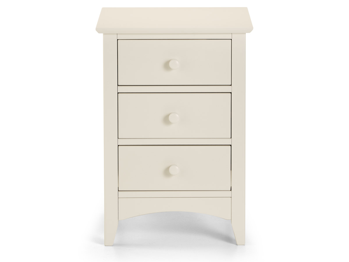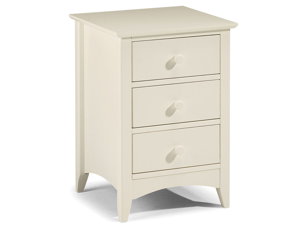 simple 3 drawer bedside locker in stone white finish. 43x43x63cm (H)