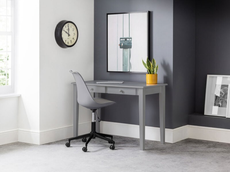 Finished in a grey lacquer, the free-standing Carrington Desk has a simple, yet stylish look. Featuring two drawers with rounded handles for storing all your stationary essentials, the Carrington Desk offers a compact design suitable for a range of décor. Pair with a variety of Julian Bowen Chairs.