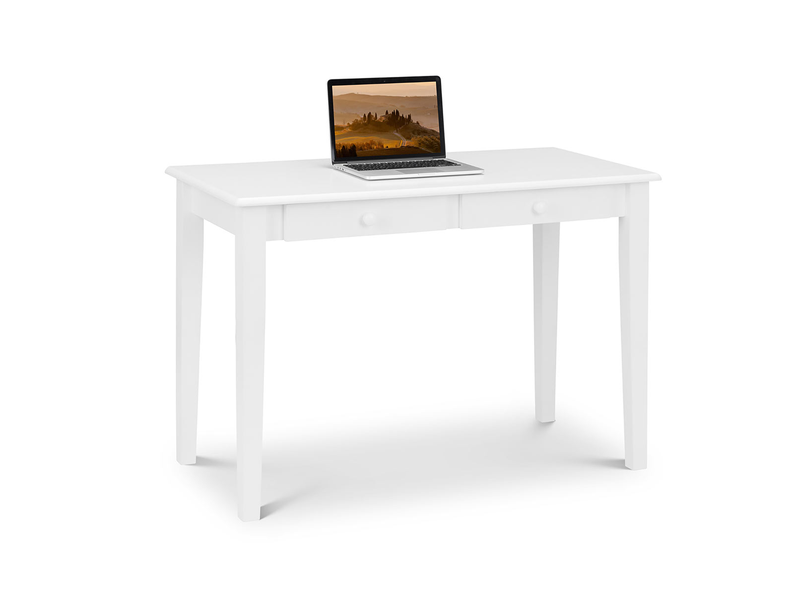 Finished in a crisp white lacquer, the free-standing Carrington Desk has a simple, yet stylish look. Featuring two drawers with rounded handles for storing all your stationary essentials, the Carrington Desk offers a compact design suitable for a range of décor. Pair with a variety of Julian Bowen Chairs.